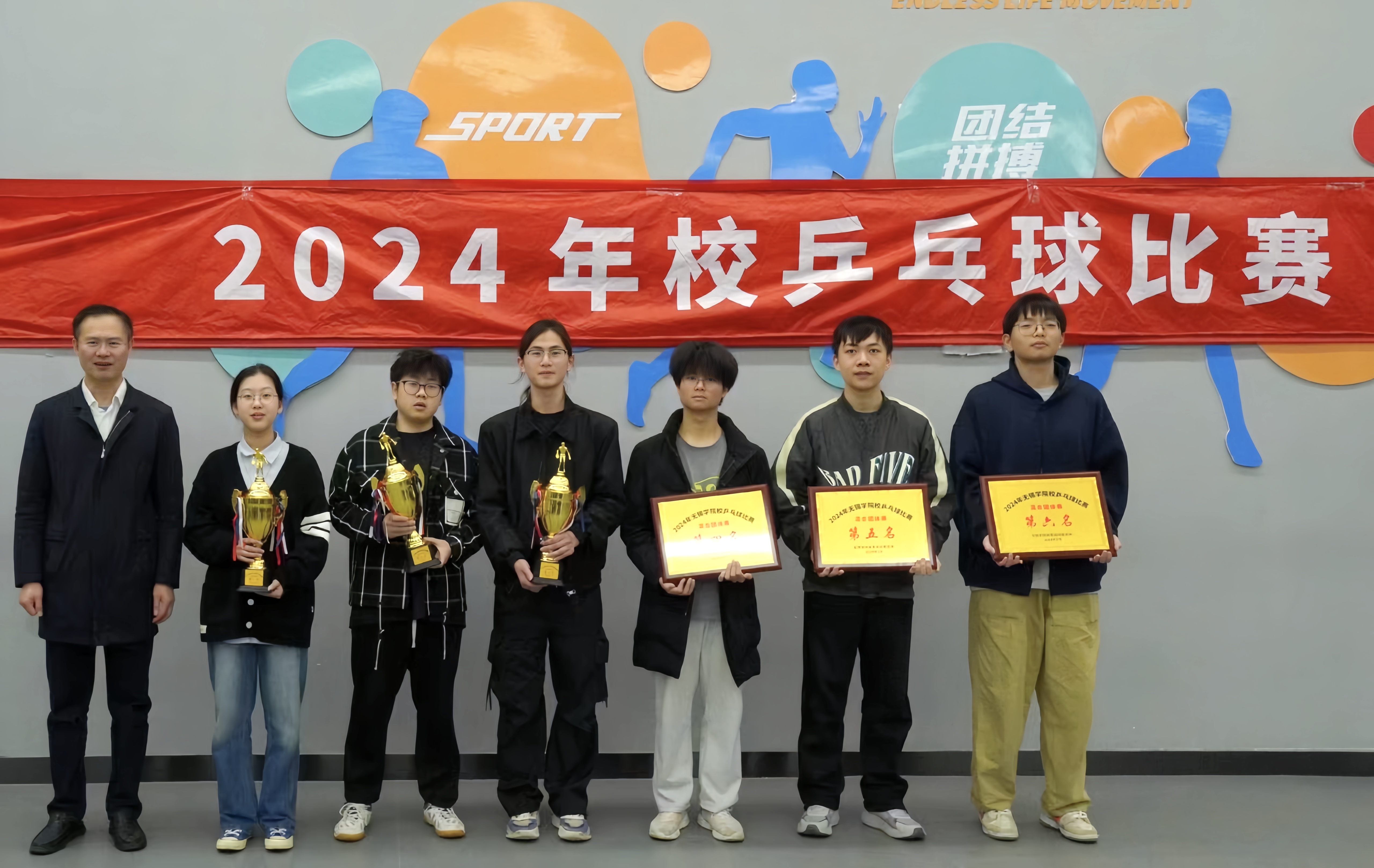 3月27日下午,2024年校乒乓球比赛在决赛的哨声中正式落下帷幕。经过五天的激烈角逐,数字经济与管理学院、物联网工程学院、电子信息工程学院分获混合团体前三名;张美家、吴以淼、郭家杰分获男子单打(甲组)前三名;冯瑞驰、徐正涛、谢凌峰分获男子单打(乙组)前三名;许单丹、张鑫、蒋莹菊分获女子单打前三名。