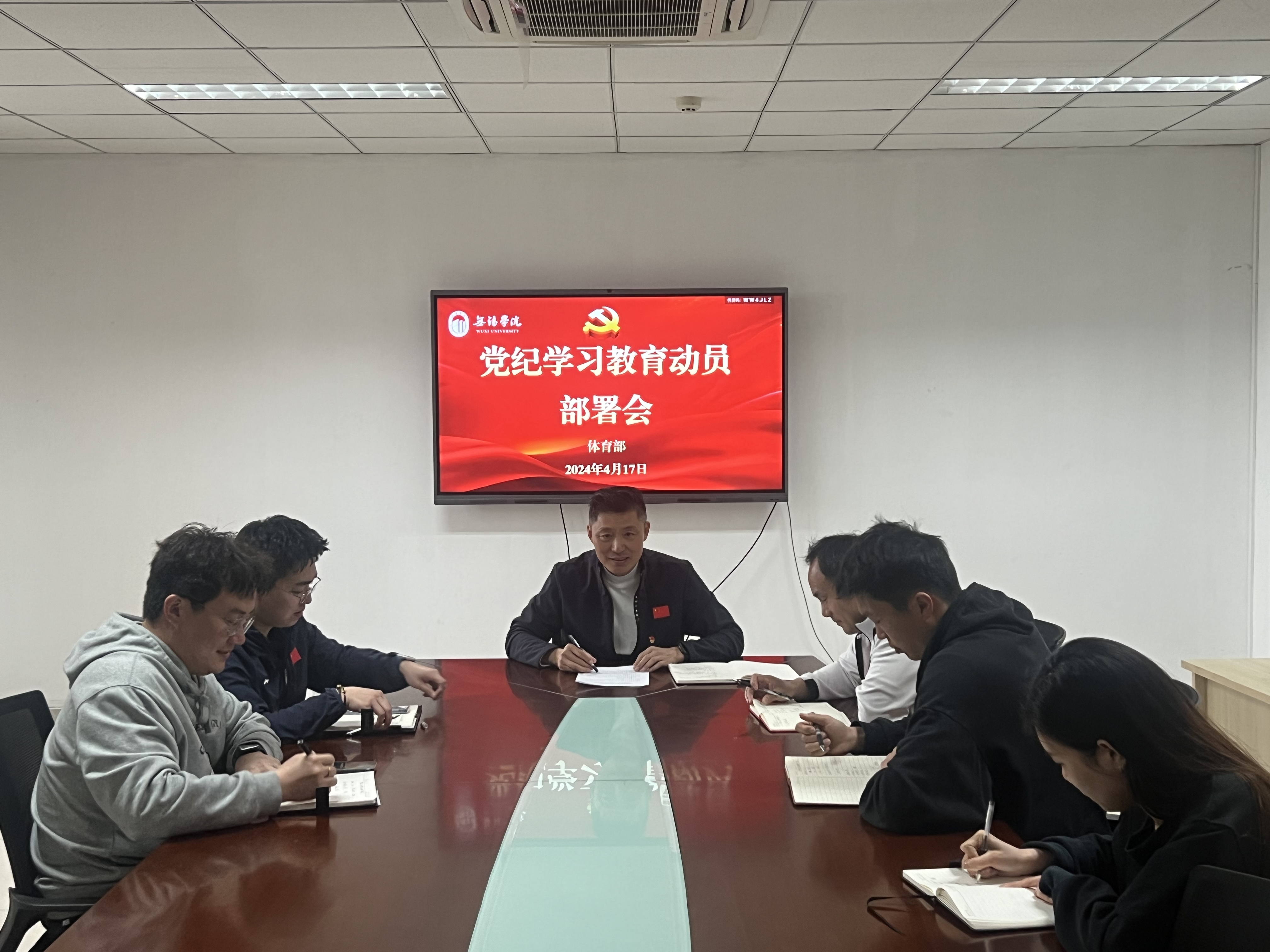 4月17日上午,体育部在体育馆204会议室召开党纪学习教育动员部署会。会议由党总支负责人宋巨华主持,主任助理刘兰财和相关党员教师参加会议。