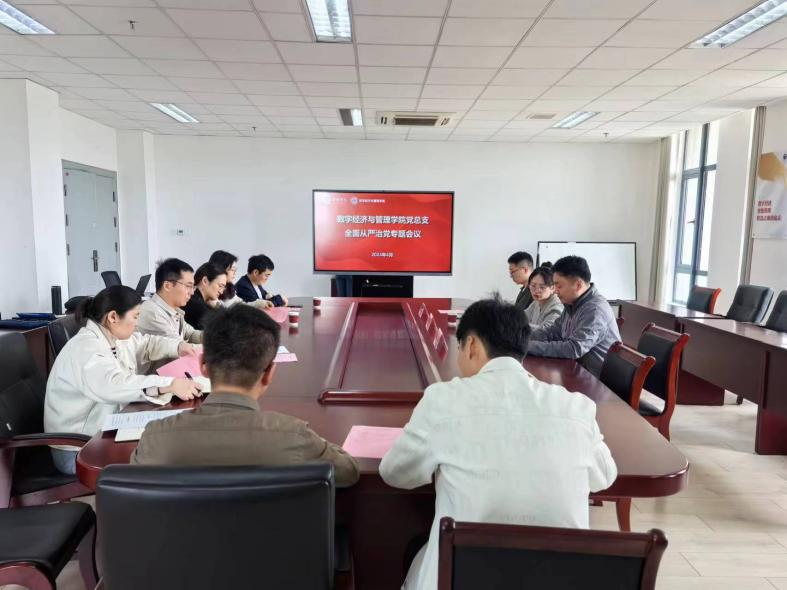 4月23日,数字经济与管理学院党总支在尚美楼504会议室召开全面从严治党专题会议,学院党总支理论学习中心组成员和全体党支部书记参会,会议由李诗雅主持。