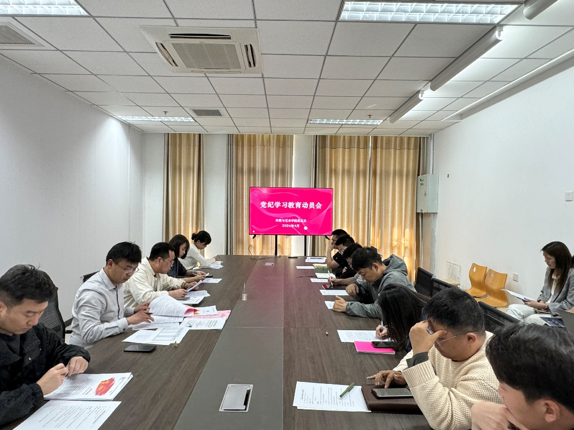 为深入学习贯彻习近平总书记关于党纪学习教育的重要讲话和重要指示精神,推进党纪学习教育走深走实,4月24日下午,传媒与艺术学院党总支在尚诚楼205会议室召开党纪学习教育动员会,学院全体教职工参会。会议由党总支副书记郭新宇主持。