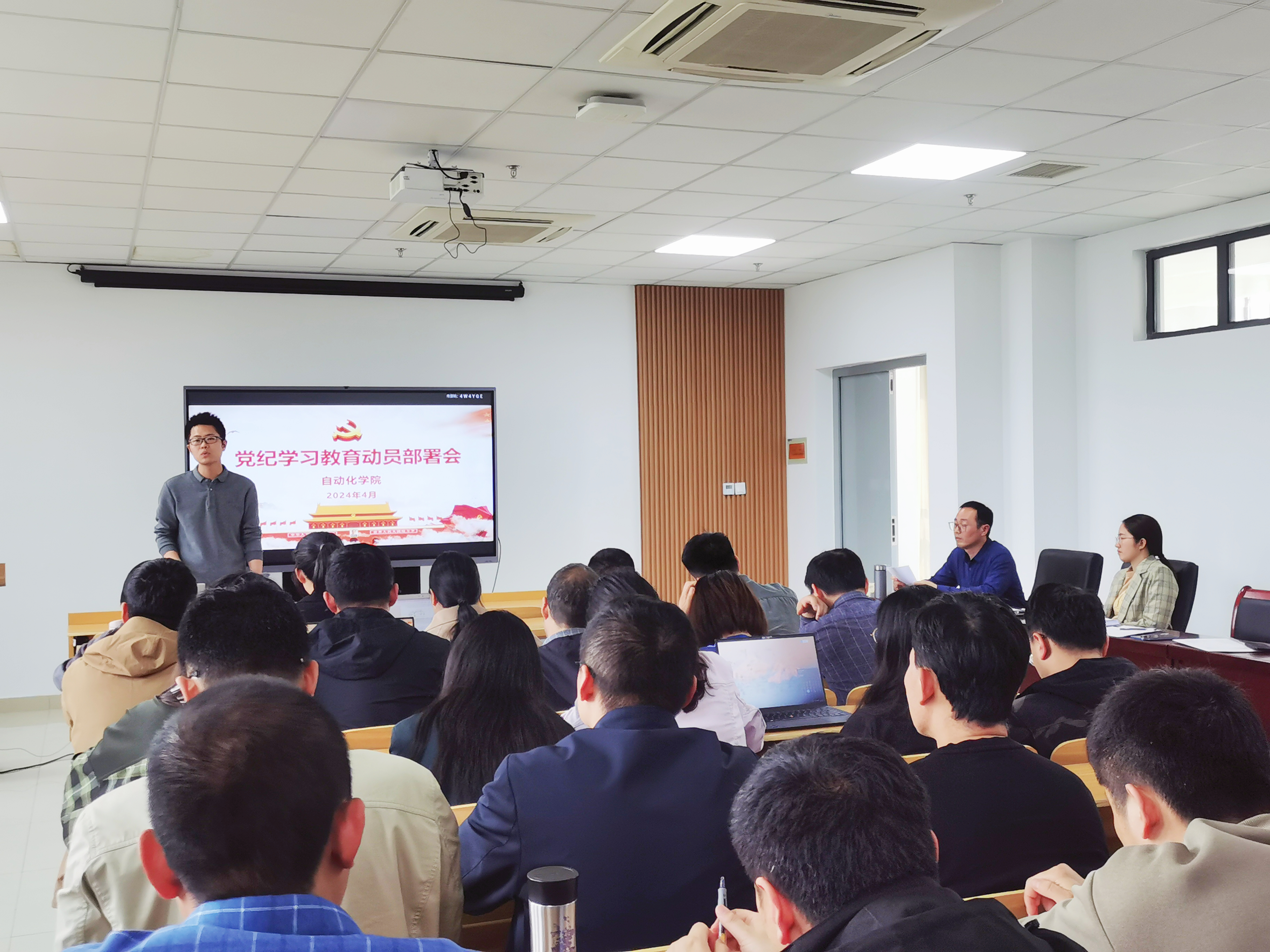 为深入学习贯彻习近平总书记关于党纪学习教育的重要讲话和重要指示精神,推动全面从严治党向纵深发展,4月26日下午,自动化学院在思齐楼510会议室召开党纪学习教育暨全面从严治党工作会议,副院长孙宁、党总支副书记王明杰以及全体教师党员参加会议,会议由王明杰主持。