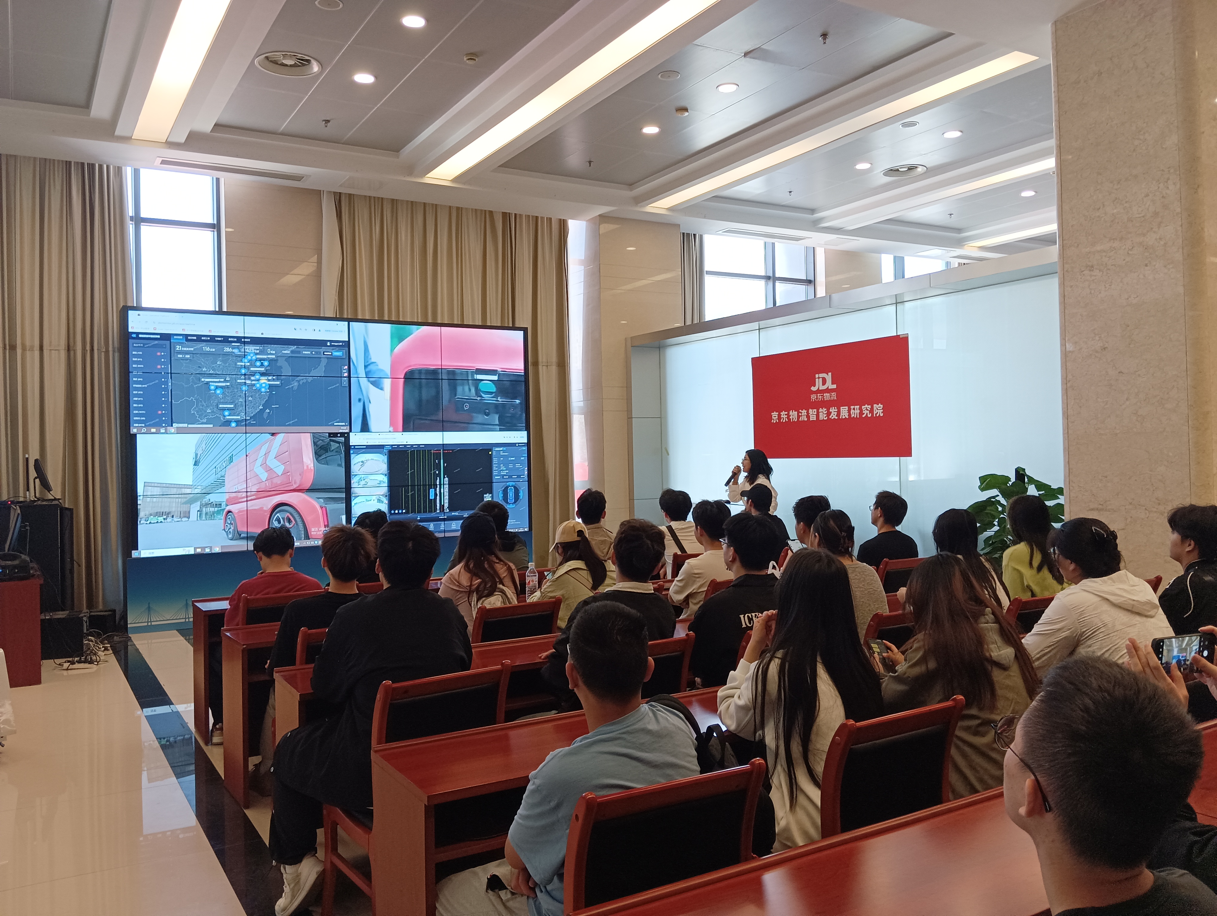 在京东物流智能发展研究院,大家目击了无人物流车在实际应用场景中的运作现场。该项目展示了京东在物流领域的最新科技应用,这些配备了先进传感器的无人物流车,凭借先进的人工智能技术和精准的定位系统,能够自主规划路径,实时避开障碍物,实现高效、智能的物流配送。工作人员详细介绍了无人物流车的核心技术,包括自动驾驶、智能调度等,并现场展示了无人物流车如何进行自主装卸货,让同学们深刻感受到了未来物流行业的高效与便捷。