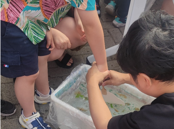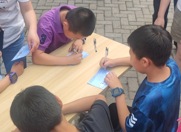 在亲子活动环节中,小朋友和家长共同体验非遗漂漆,制作小火车书签。小朋友在动手实践中,亲身感受中国非遗传统文化的魅力。活动结束之际,孩子们纷纷在明信片上留言,表达了对科普活动的喜爱和对未来的美好憧憬。