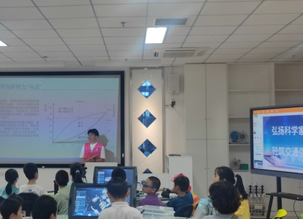 科学启迪智慧,科技创造未来。为弘扬科学家精神,轨道院副院长朱菊香围绕我国轨道交通发展历程,向小朋友展示了轨道交通事业发展过程中涌现出的一批优秀科学家以及他们所具备的科学家精神。朱菊香通过绘声绘色的讲述,激发起小朋友对科学家精神的崇敬之情,鼓励他们向詹天佑等老一辈科学家学习,秉持“家国情怀,勇于创新,追求卓越,甘于奉献”精神,为祖国的科学事业奋斗终身。科普志愿服务团队讲解员黄文昊则向小朋友做《高铁变脸记》科普讲座,通俗易懂地介绍了各式火车头背后所蕴含的科技奥秘和科学原理。