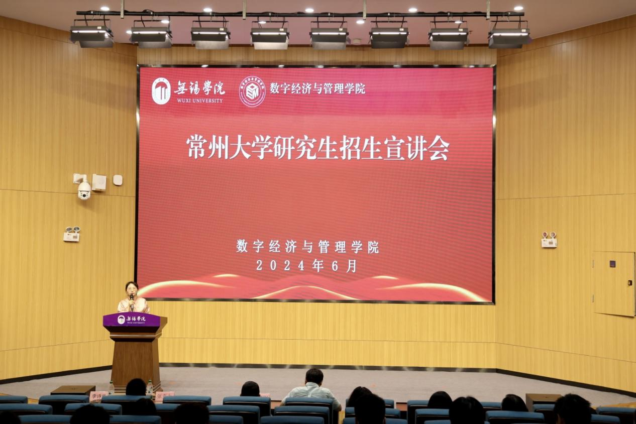 为帮助学生了解考研形势,扎实推进2025届毕业生考研工作,充分调动学生考研积极性,加强院际交流,6月11日,应数字经济与管理学院邀请,常州大学商学院、吴敬琏经济学院在图书馆报告厅开展考研宣讲,常州大学商学院副院长刘建刚、常州大学吴敬琏经济学院院长助理曹启龙等进行宣讲,我校数字经济与管理学院党总支副书记李诗雅主持。