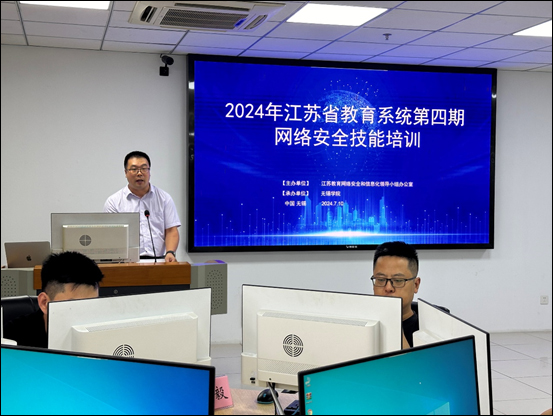 为了确保培训的高质量进行,活动特别邀请了来自教育部教育管理信息中心及江苏省电化教育馆的领导亲临现场,他们不仅带来了网络安全工作的最新政策导向与战略部署,还就当前网络安全面临的形势与挑战进行了深入剖析,为参训人员指明了学习与实践的方向。