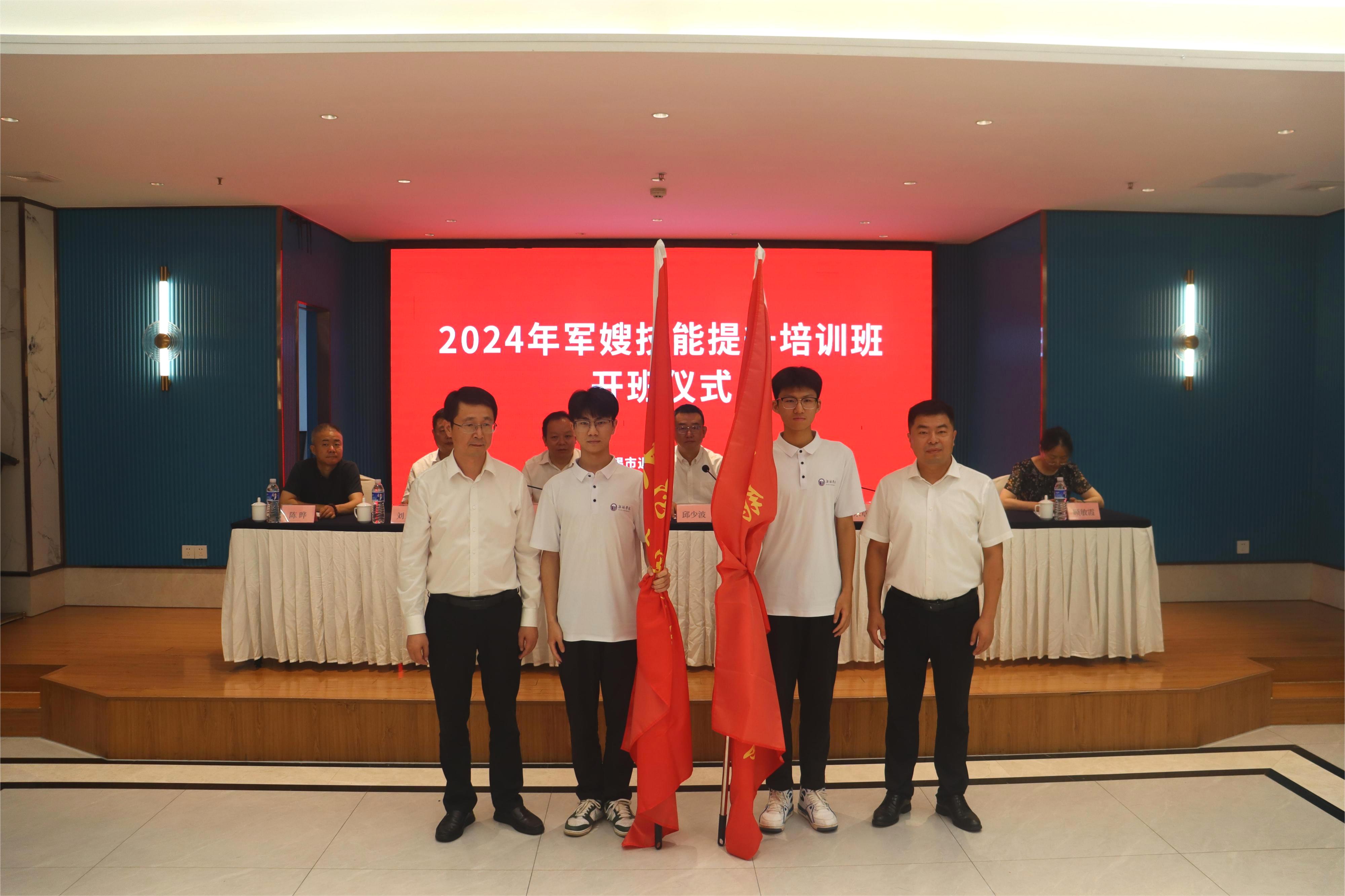 7月10日,无锡市2024年军嫂技能提升培训班开班仪式在锡山区隆重举行。无锡市退役军人事务局党组书记、局长邱少波,锡山区副区长谢乐章,我校党委学生工作部(处)、人民武装部部长(处长)张灿龙,无锡市退役军人事务局副局长张赟,锡山区总工会副主席顾敏霞,锡山区退役军人事务局党组书记、局长刘人大,锡山区退役军人事务局副局长章士东,驻锡各部队联络员、无锡学院国旗护卫队、“戎耀讲解团”志愿者团队以及30余位军嫂参加活动。会上,我校被正式授旗成立“无锡学院大学生银洁军嫂志愿服务分队”。