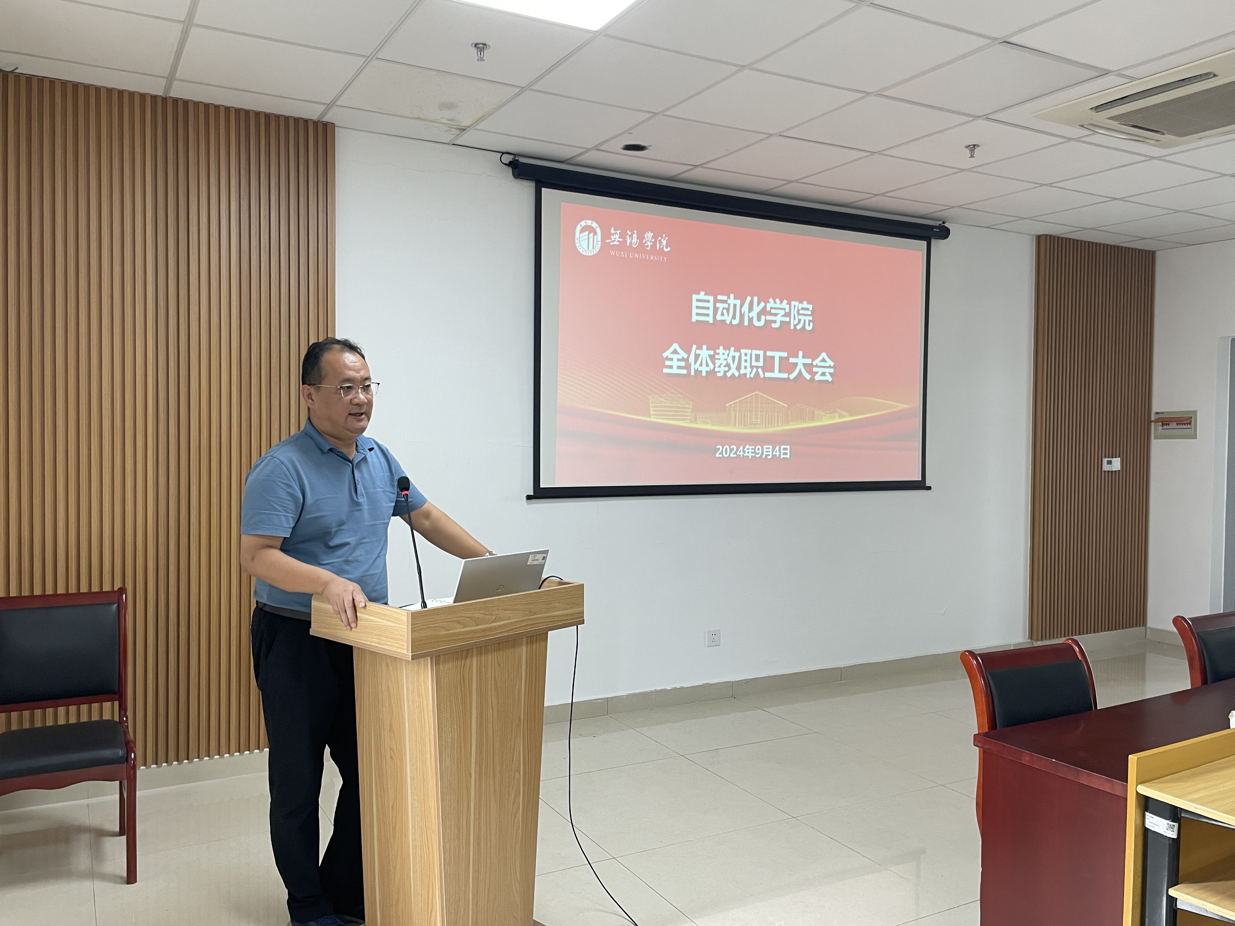 9月4日,自动化学院在思齐楼510会议室召开新学期全体教职工大会,传达学校专题研讨会重要精神,并结合“十四五”发展规划和上半年工作进展,对下半年工作进行了详细的安排和部署。会议由学院副院长孙宁主持,全体教职工参加会议。