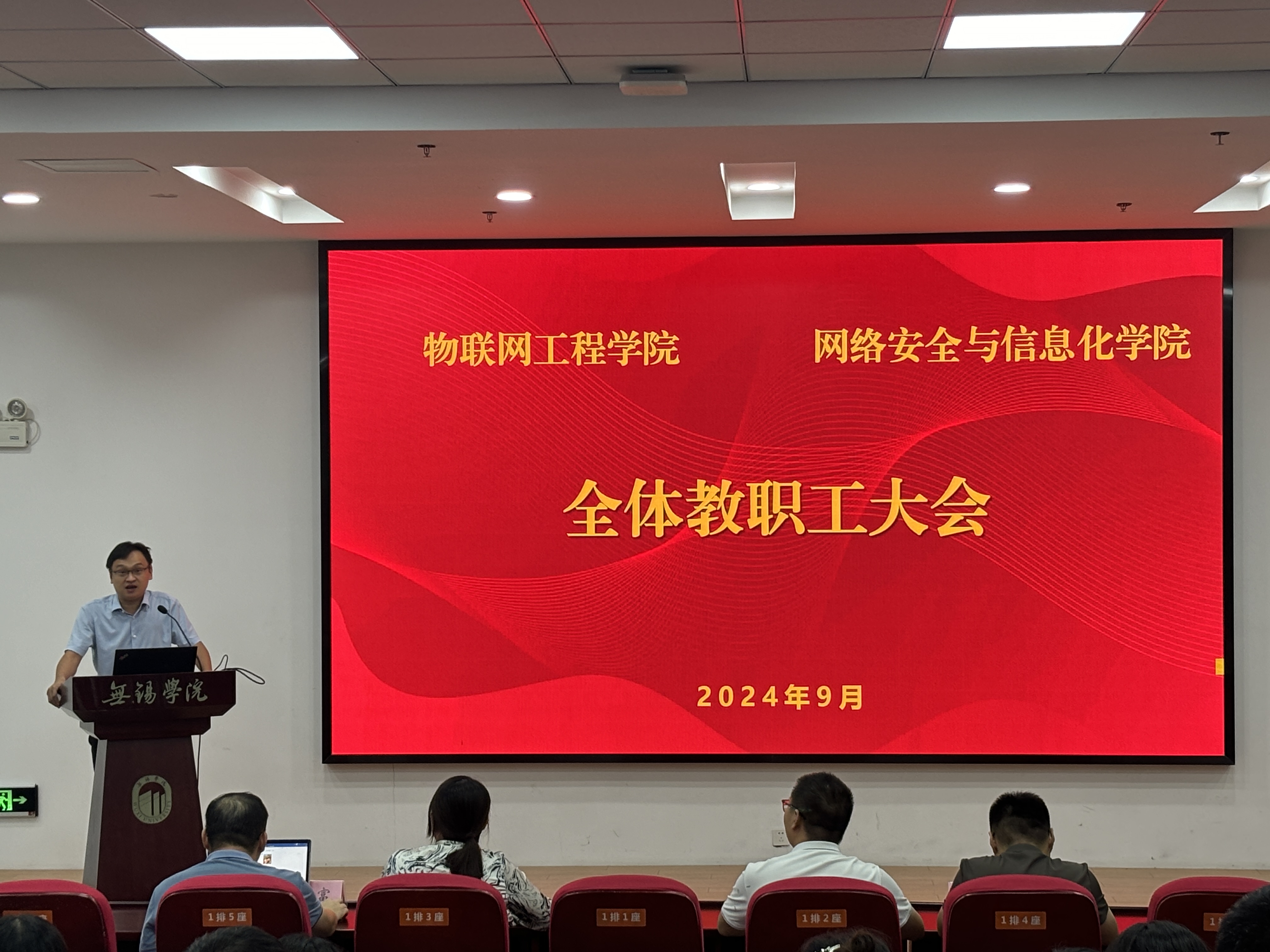本次会议不仅加强了教职工之间的沟通交流,也进一步明确了学院本学期的发展目标和方向。全体教职工将以此次会议为契机,共同推动学院的更高质量发展,努力培养更多具有社会责任感、创新精神和实践能力的高素质人才。(物联网工程学院、网络安全与信息化学院/文、图:吕喆喆;审核:王泉)