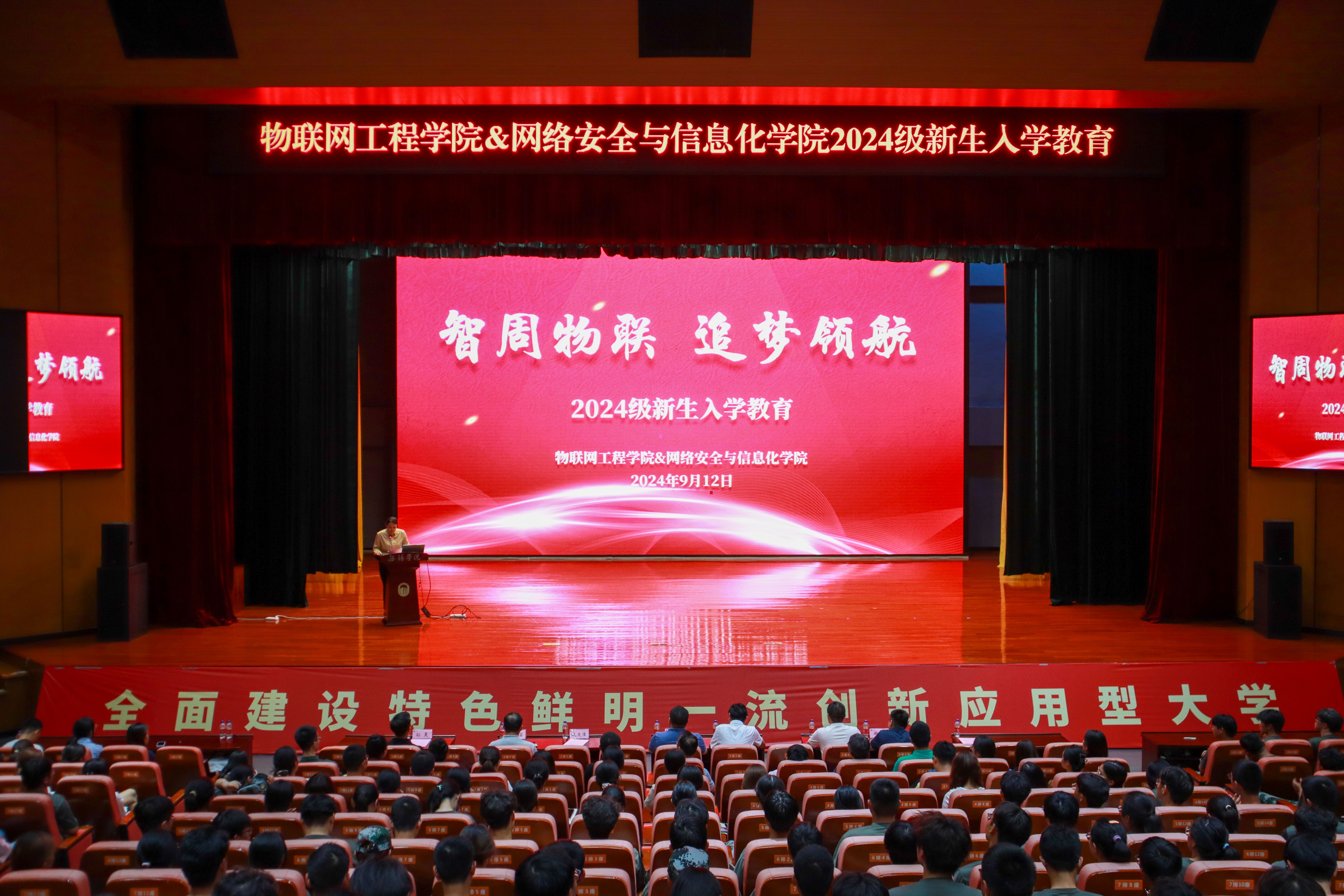 金秋九月,丹桂飘香。9月12日,物联网工程学院(网络安全与信息化学院)在滨江大礼堂二楼报告厅隆重举行2024级新生入学教育。院长王泉,网络安全与信息化学院负责人曹燚,院长助理李富、阚希,学生办公室副主任孙昊,各系主任,新生班级班主任、辅导员及2024级全体新生参加,会议由学院党总支副书记臧文佳主持。