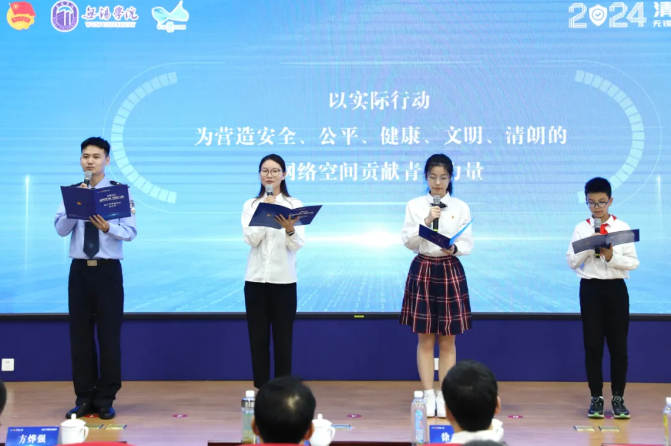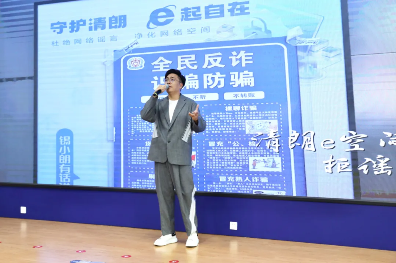 此次活动由团市委、无锡学院主办,市青少年发展服务中心、锡山区委网信办、无锡学院网络空间安全科普教育基地、团锡山区委承办。活动聚焦青少年群体,通过网络安全教育主题宣讲、情景剧主题演出、网络安全知识问答等多种形式,广泛宣传网络安全知识和防护技能。活动现场,由市委网信办、团市委、锡山区委网信办联合出品的原创歌曲《清朗E时代》首发亮相,朗朗上口的歌词、昂扬大气的旋律,引导大家共同守护清朗E空间、共建文明绿色的网络家园;为打造安全的互联网环境,让互联网成为青年学生学习、工作和生活更为舒心、更为安全的第二家园,活动中,来自锡山区的共青团员、少先队员、青年教师、青年民警代表共同发出青少年网络安全倡议。