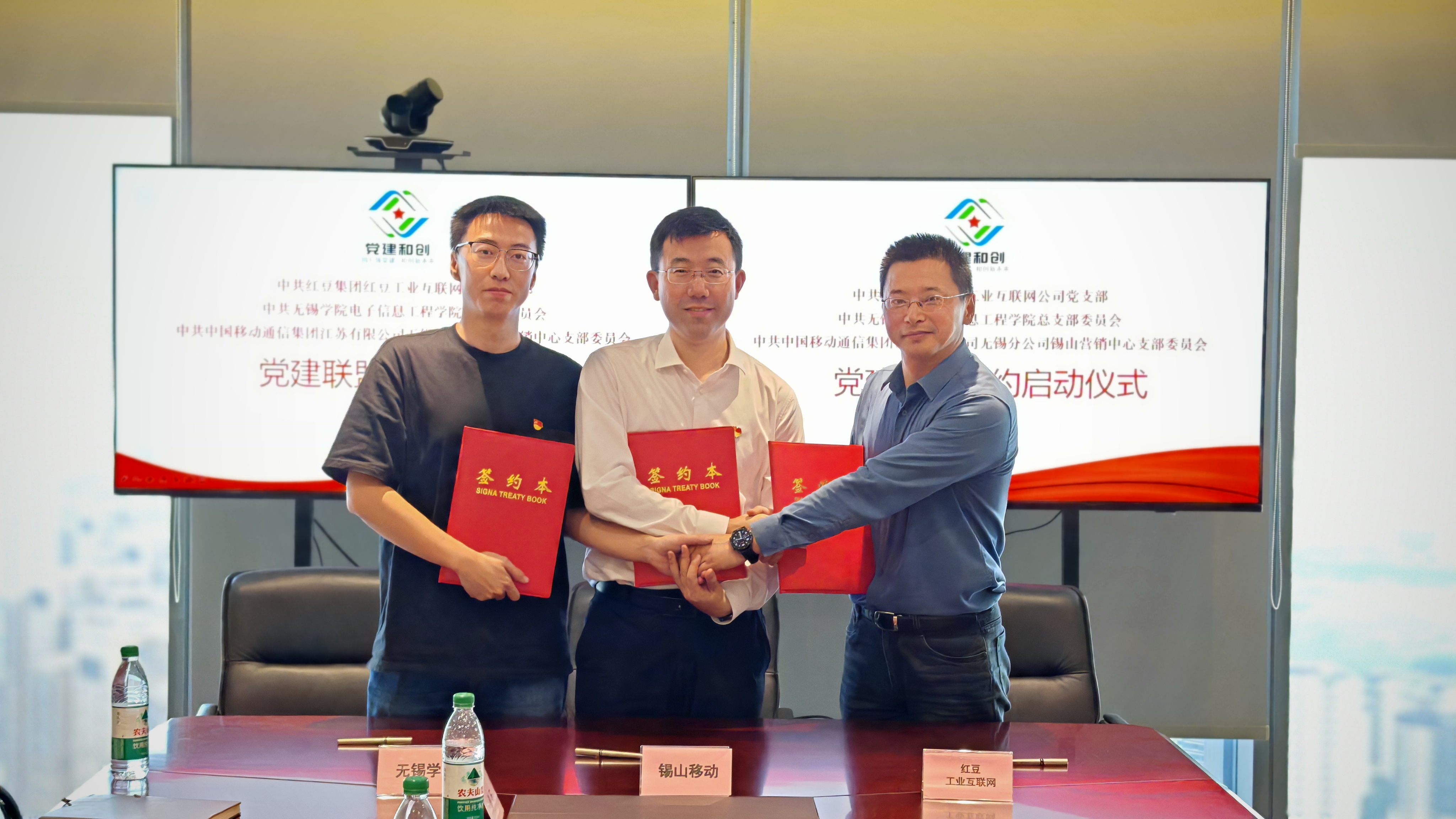 为进一步激发党组织活力,增进党组织间学习交流,以高质量党建引领学院高质量发展,10月17日下午,电子信息工程学院党总支、红豆工业互联网公司党支部、锡山移动营销中心党总支党建结对共建协议签约仪式在红豆集团总部会议室召开,电子信息工程学院院长郭业才,党总支副书记张健等一行4人参加活动。