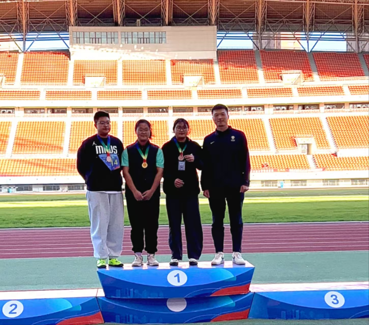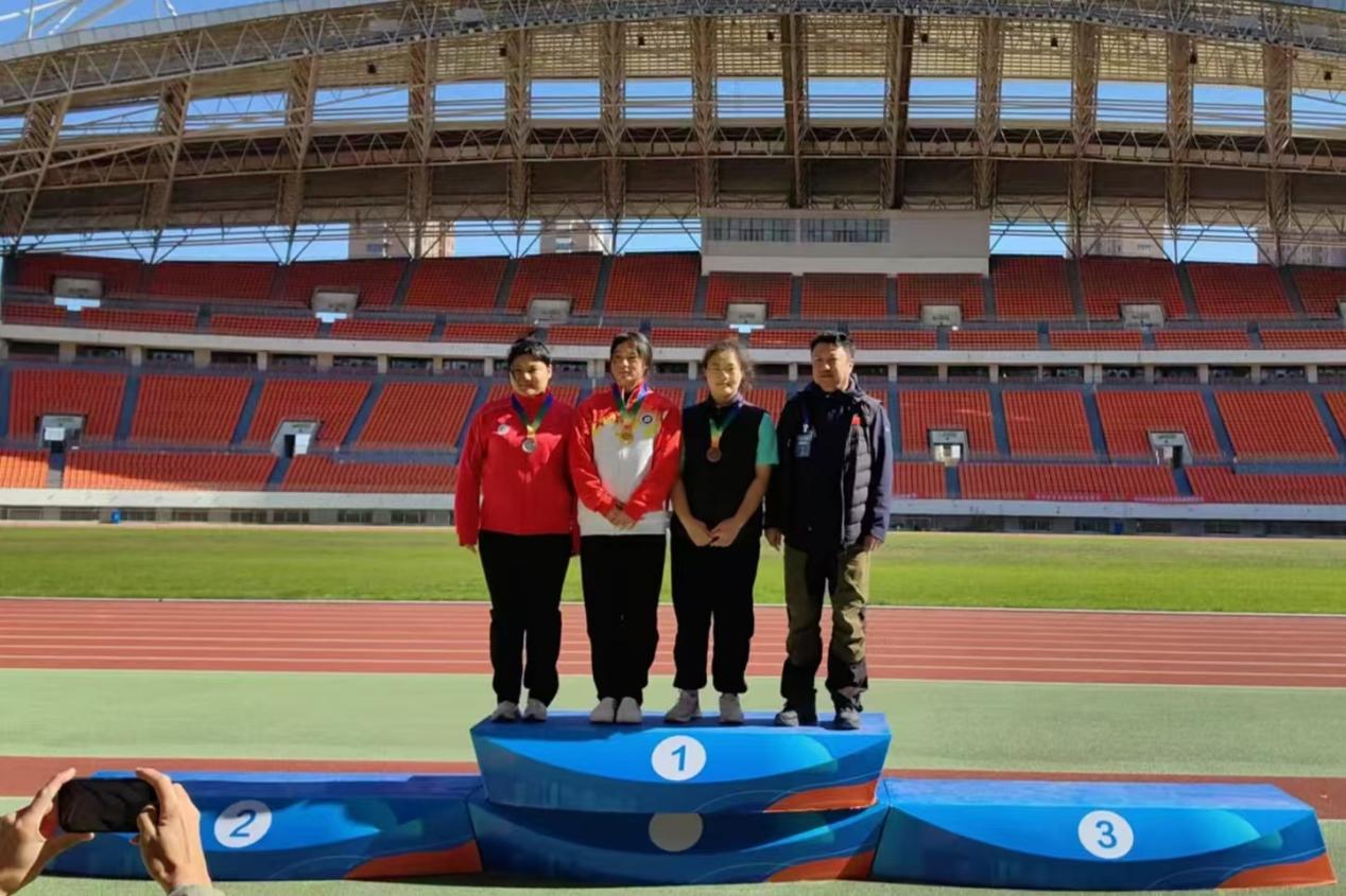 女子甲组铅球:赵婉清(左二)夺金牌、李孟(右二)获铜牌