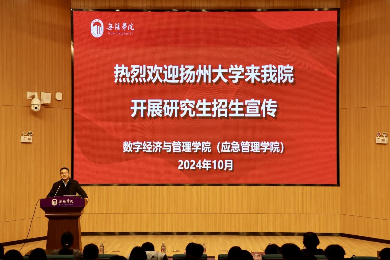 为推动学院人才培养质量提升,提高学生考研意识和竞争力,10月22日,数字经济与管理学院(应急管理学院)特邀扬州大学商学院党委副书记姚丰华、副院长黄春燕,缪艳娟教授、刘锦锦博士,在图书馆报告厅举办扬州大学研究生招生宣讲会。数字经济与管理学院党总支副书记李诗雅主持。