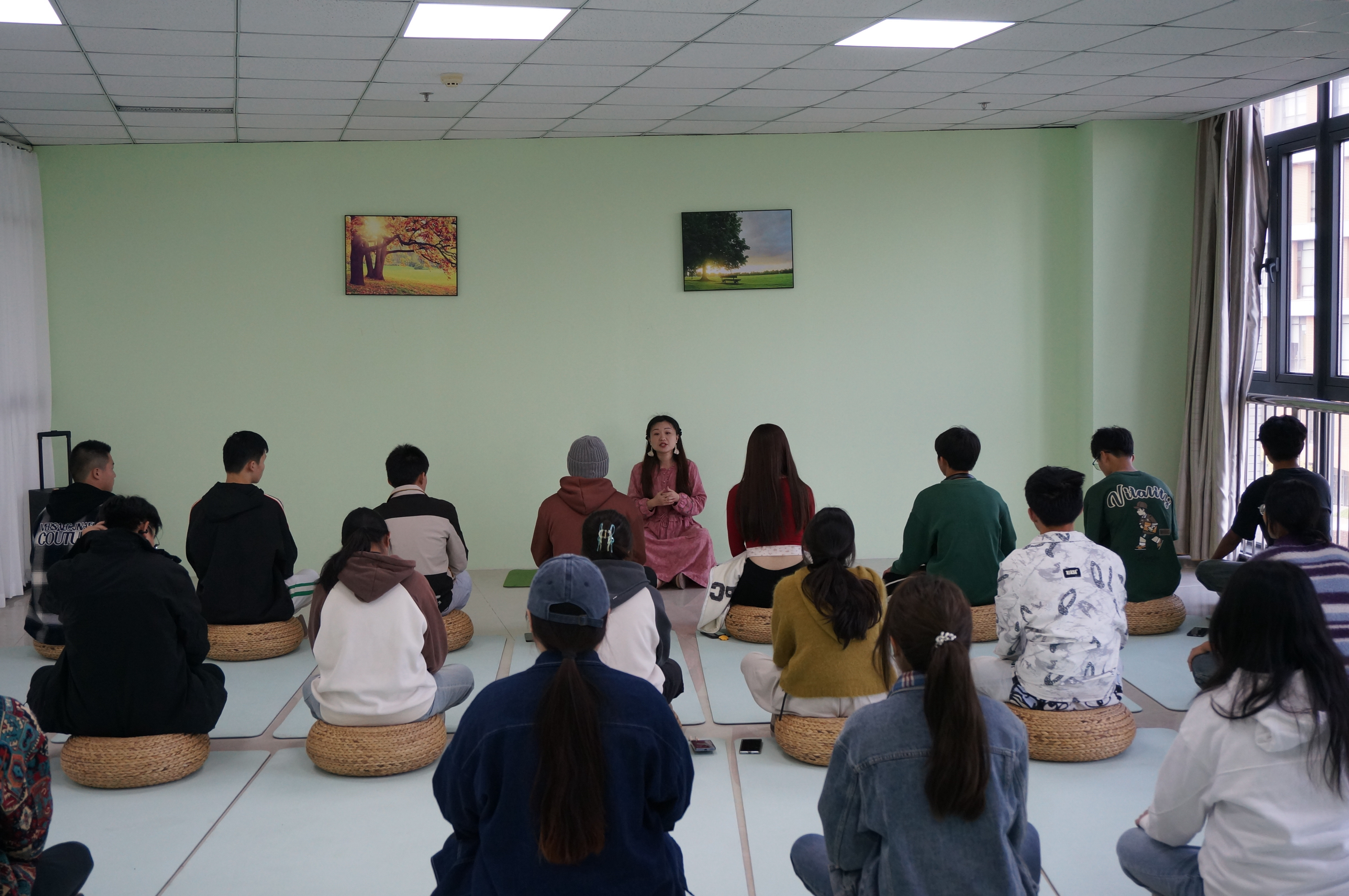 活动现场,心理健康教育中心吴安莲老师介绍了正念的由来、原理以及在现实生活中的实际应用价值。“正念”就是有目的地、有意识地去关注和觉察当下的一切,同时对当下发生的一切不作任何评价或反应。活动过程中,吴老师带领同学们一起跟随轻柔舒缓的音乐进行呼吸练习、静坐冥想和躯体扫描等体验活动。活动结束,同学们就此次体验活动中的感受进行了交流分享。