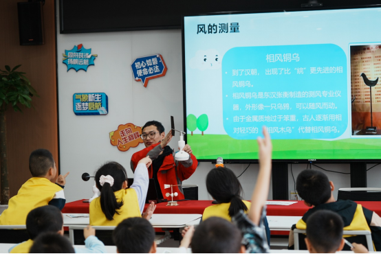 活动现场,陈佳栋向到场的领导、志愿者和研学班同学表示诚挚的欢迎。在航天新气象科技科技有限公司的工作人员的接引下,小朋友们依次参观了科普馆和气象仪器生产线,航天新气象科普课程讲师为大家带来一趟生动的科普课,带领同学们一起制作了简易风速仪。最后,同学们还参观了长广溪气象观测场。在为期一天的研学活动中,志愿者们用饱满的热情和高度的责任感顺利完成工作。