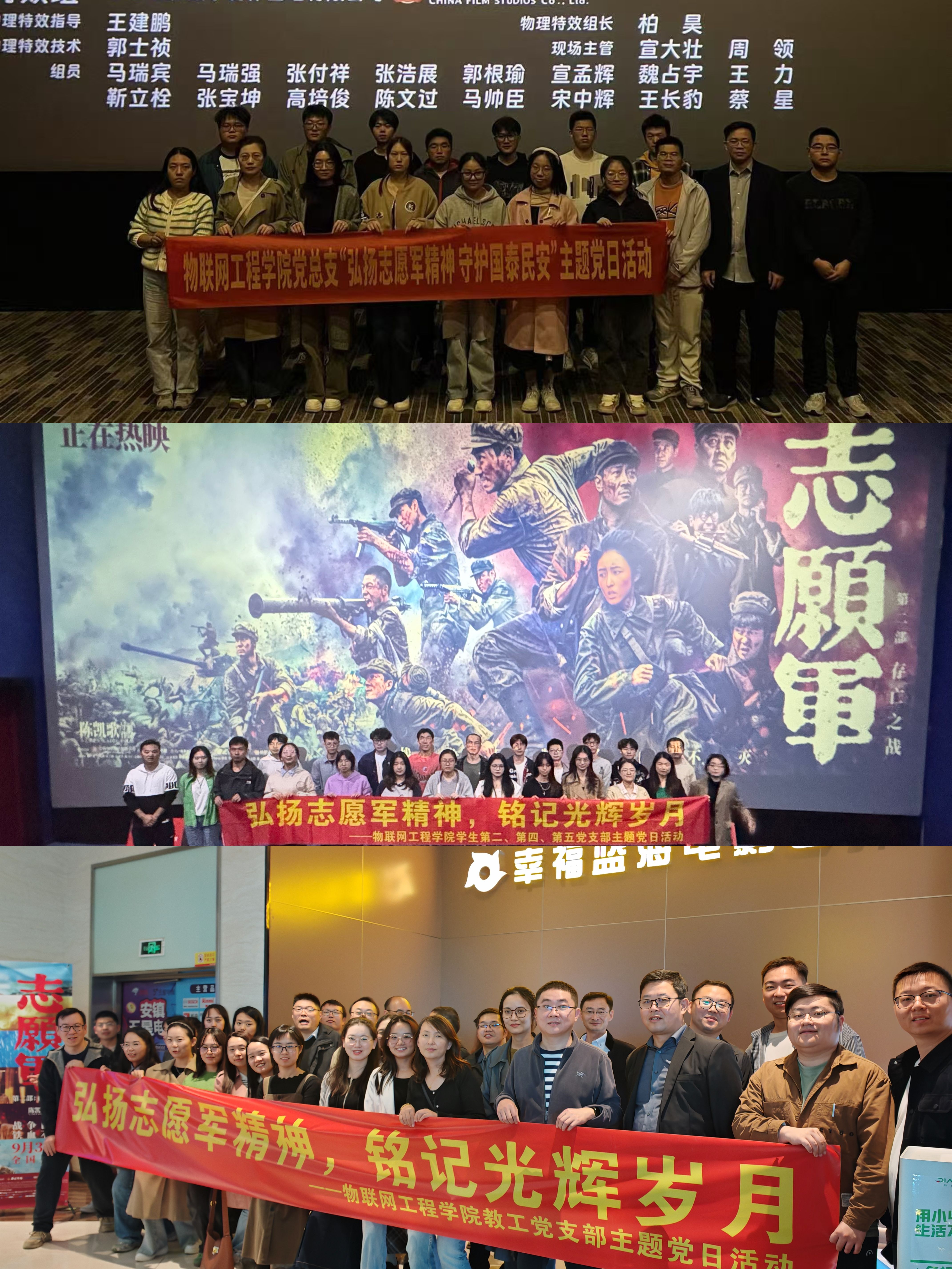 为更好教育引导师生党员传承红色基因、弘扬爱国主义精神,激励党员缅怀革命历史,坚定党员理想信念。近日,物联网工程学院(网络安全与信息化学院)党总支开展弘扬志愿军精神为主题的观影党日活动,组织教工党员、学生党员观看红色主题电影《志愿军:存亡之战》。