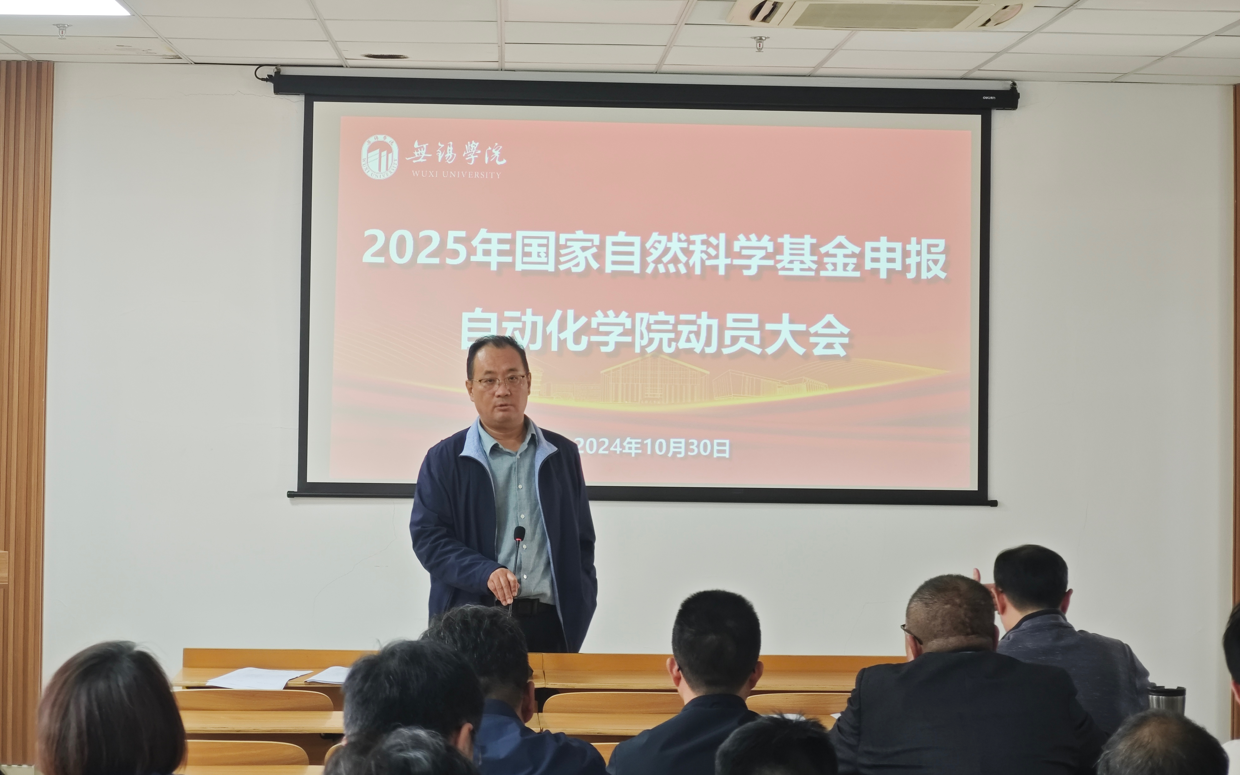 为推进自动化学院科研工作进一步平衡发展,提高2025年国家自然科学基金申报工作效率,10月30日下午,自动化学院在思齐楼510会议室召开“2025年国家自然科学基金申报动员大会。自动化学院院长李鹏,副院长孙宁、蒋卫锋(挂职)及全院专任教师参加了此次大会,会议由蒋卫锋主持。