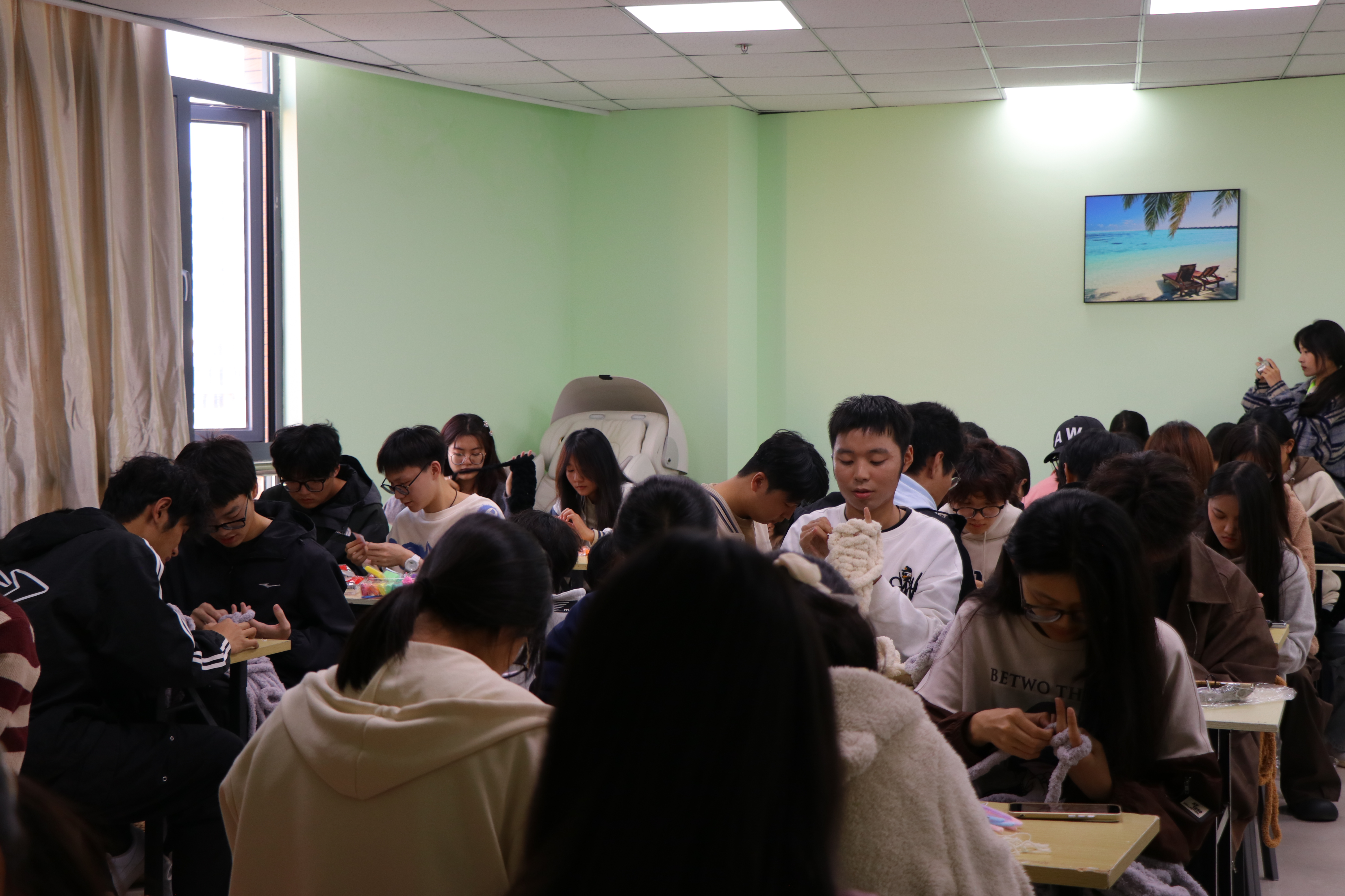 为帮助大学生改善心理状态,增进同伴友谊,11月6日下午,学生工作处在学生活动中心团体活动室举办“编织情绪,指尖疗愈”心理手工DIY活动,共100余名同学参加此次活动。