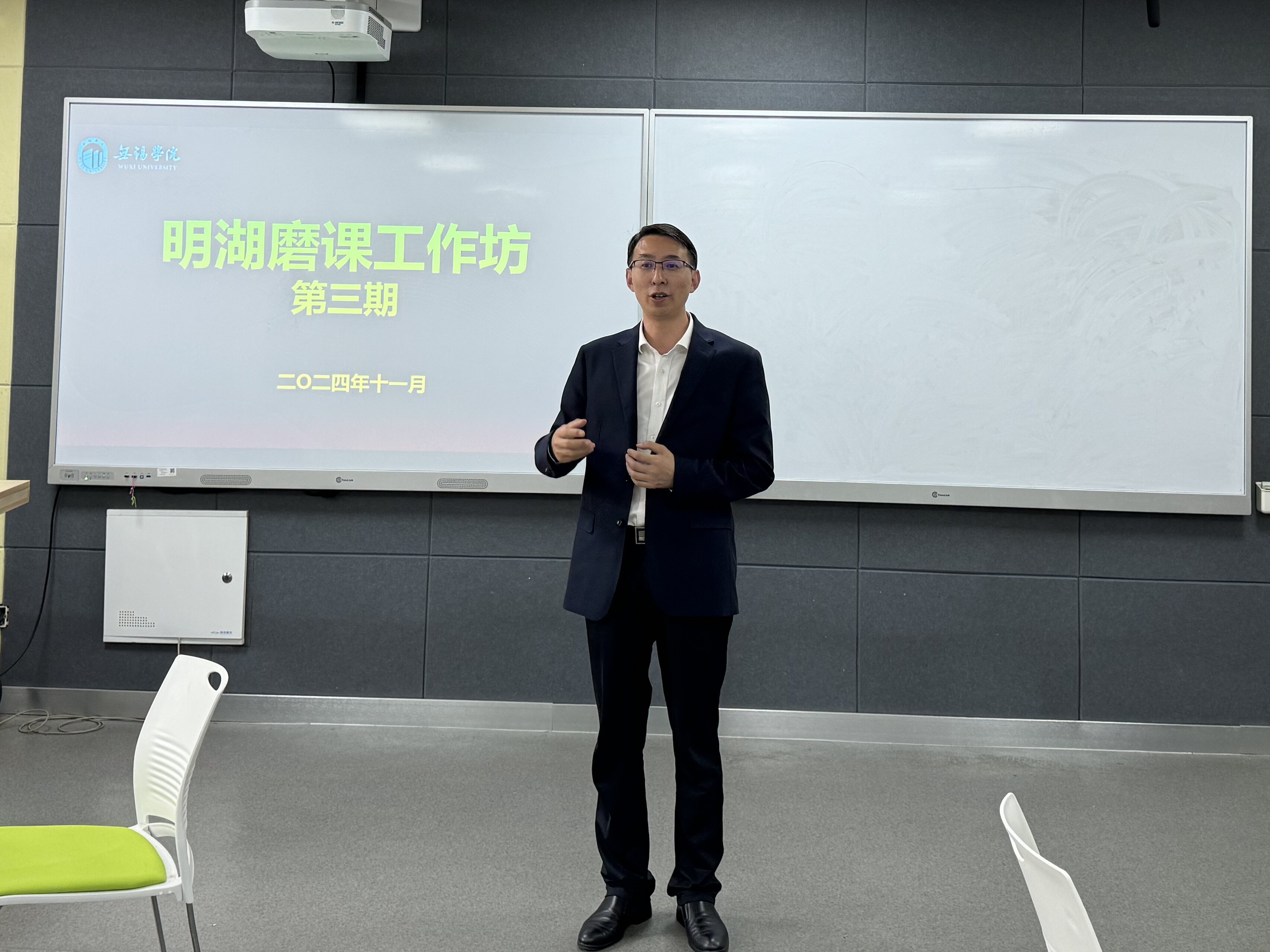 11月13日下午,教学创新大赛经验分享专题讲座在尚真楼210智慧教室举行。此次工作坊特邀教学创新大赛全国一等奖获得者王欢与郑璐恺等两位教师分享教学创新大赛经验。副校长曹广喜、教师发展与教学评估中心副主任陈玉林、副处长李燕飞、无锡学院第三届教学创新大赛参赛教师等相关人员参加了本次活动。活动由陈玉林主持。