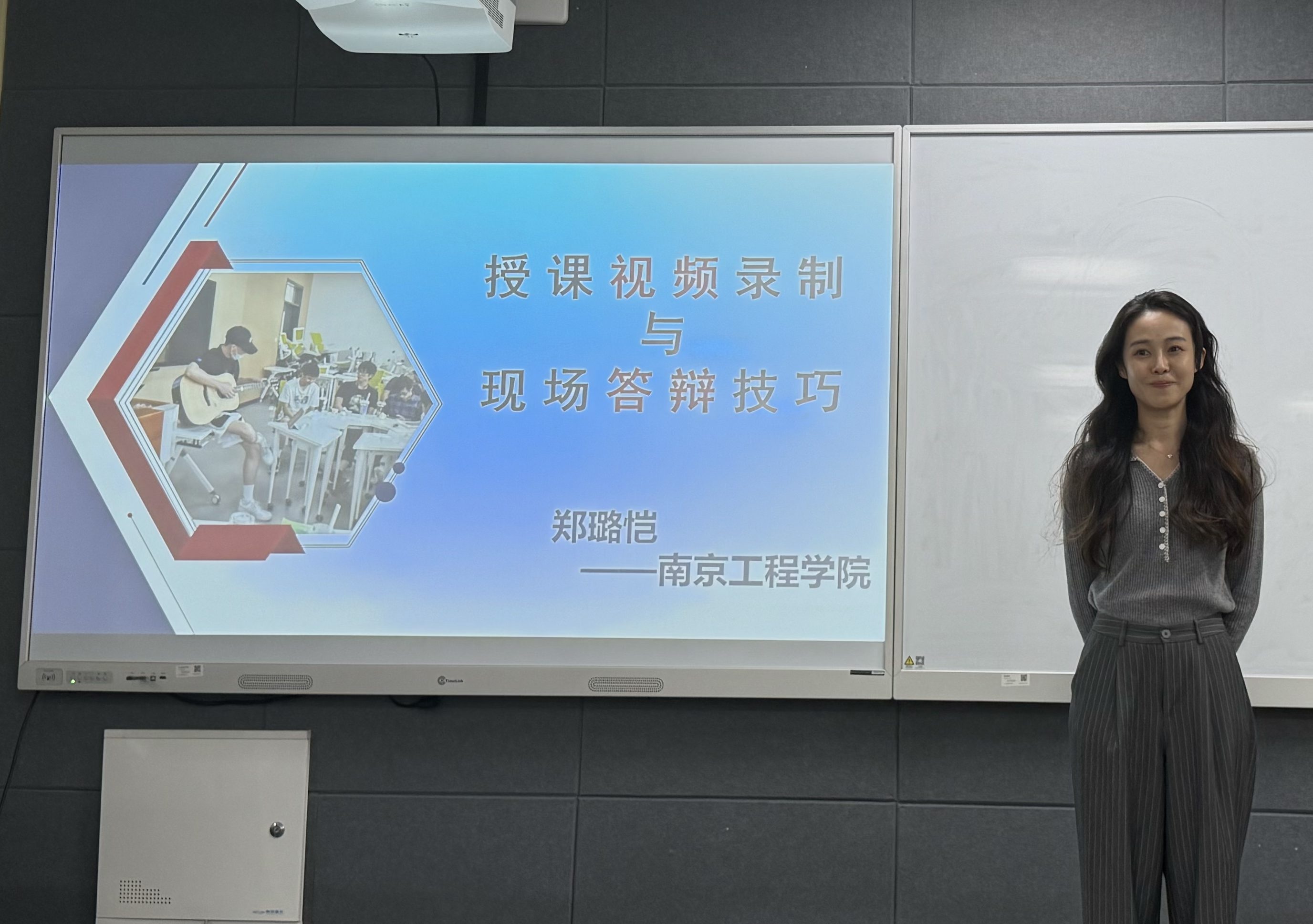 王欢以“课程教学创新设计与高校教师教学创新大赛要点剖析”为主题,结合自身参赛案例,深入剖析了教学创新的路径与举措。郑璐恺围绕“授课视频录制与现场答辩技巧”,从前期投入、引入、主体内容、总结拓展等四个方面详细介绍了项目化课程创新的思路。随后,学校选取自动化学院宋莹的课程教学创新案例进行现场展示与打磨,通过现场深度交流、研讨,为教师教学改进指明了整改方向。