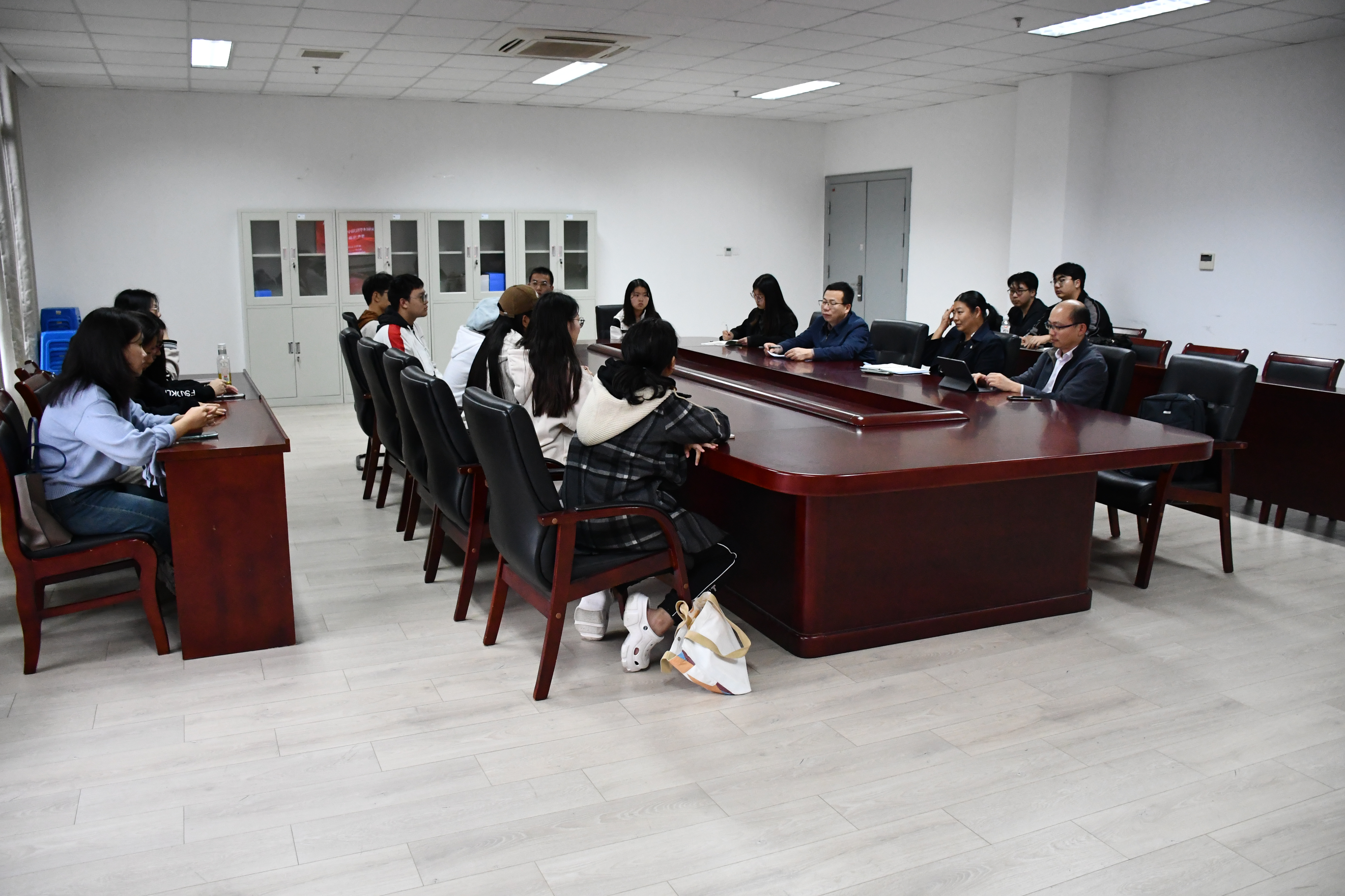 武丽向与会老师及学生说明了召开期中教学检查座谈会的目的和重要性。学生代表依次讲述了本学期以来的学习感受,并围绕课程安排、实验室维护、考研规划指导、求职实习、后勤服务等方面提出了大家所关心关注的问题。齐运锋、武丽和顾德对同学们提出的问题高度重视,并给予耐心细致的解答。他们表示,今后将在学习方面举办考研、就业系列指导规划课,在生活方面第一时间与相关职能部门沟通交流,帮助大家解决实际问题。