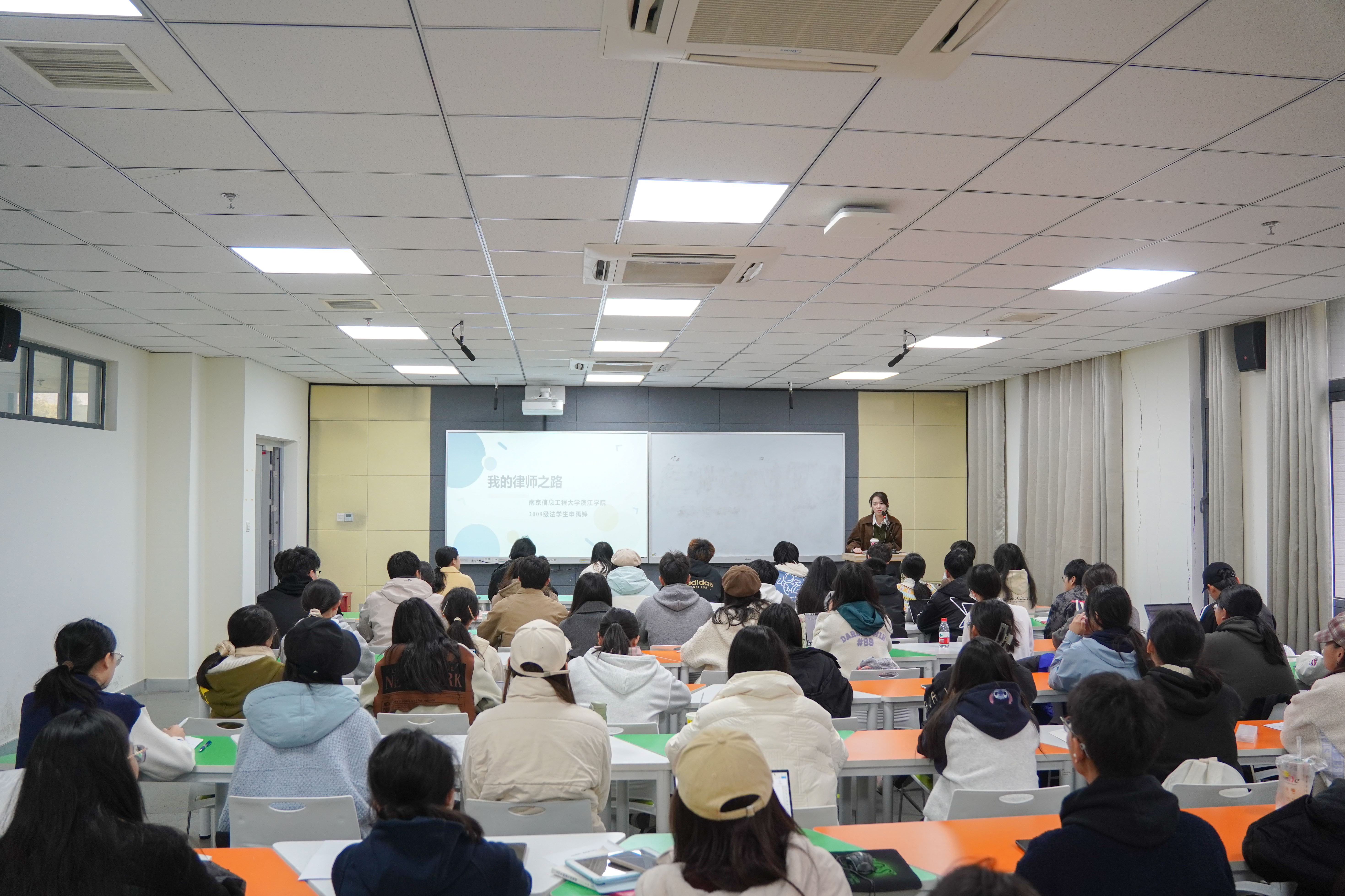 为进一步帮助法学生做好职业生涯规划,明确奋斗目标,11月20日,法学院邀请2013届法学毕业生江苏云崖律师事务所律师申禹婷来校作题为“规划未来 精彩人生——我的律师之路”的职业生涯规划讲座。活动由院学生办公室副主任董磊主持,2024级新生参加。
