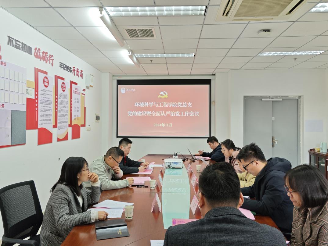 为深入学习贯彻习近平新时代中国特色社会主义思想,落实党的二十大、二十届二中、三中全会精神,贯彻执行《普通高等学校基层党组织工作条例》和《中国共产党党员教育管理工作条例》,环境科学与工程学院于11月27日召开了党的建设暨全面从严治党工作会议。院长钱杰书,党总支副书记姜欢出席了会议,全体教工党员参加会议,会议由姜欢主持。