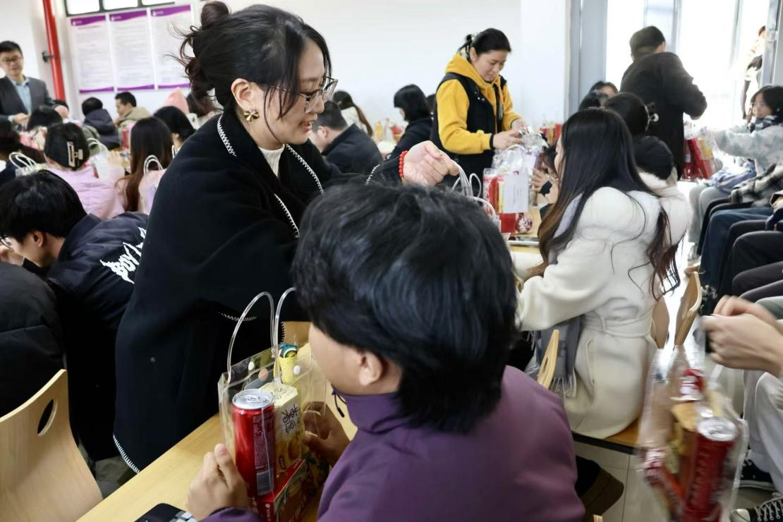 在温馨的氛围中,学院党总支副书记李诗雅和辅导员老师们为考研学子分发了精心准备的礼包。祝愿同学们“巧克”难关,心有所“薯”,一“锤”定音,可“喜”可“乐”。活动最后,学院还精心策划了“遇见锦鲤,好运连连”抽奖游戏,寓意考研学子们都能有好运相伴,也帮助同学们释放备考压力,放松身心,全心全意地投入到考研复习中去。