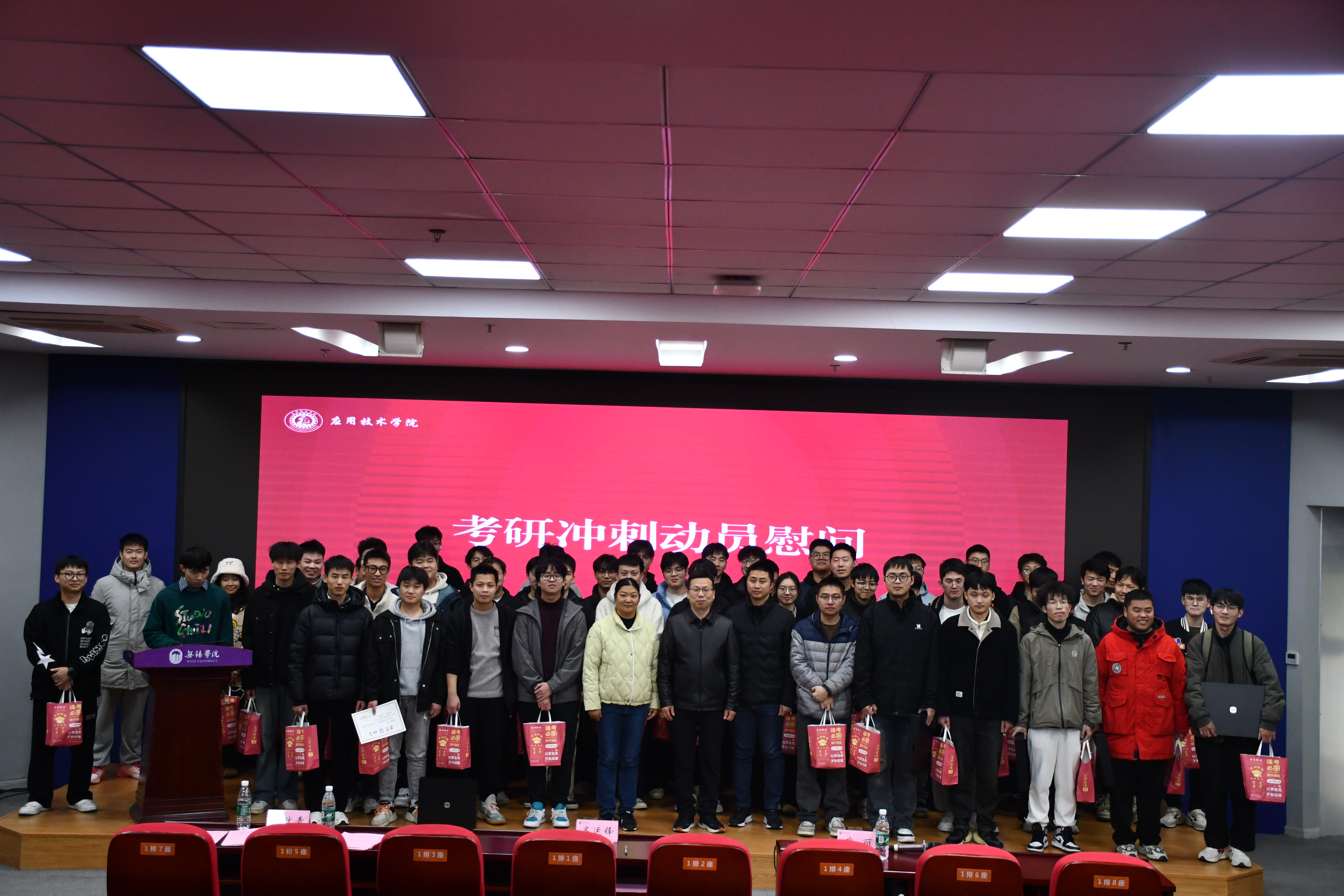 为激发考研学子的学习热情,帮助同学们坚定考研信心、缓解备考压力,12月4日下午,应用技术学院在科创楼205报告厅开展了2025届学生考研慰问活动。应用技术学院院长齐运锋,副院长武丽,党总支副书记张伏青及相关老师出席活动。