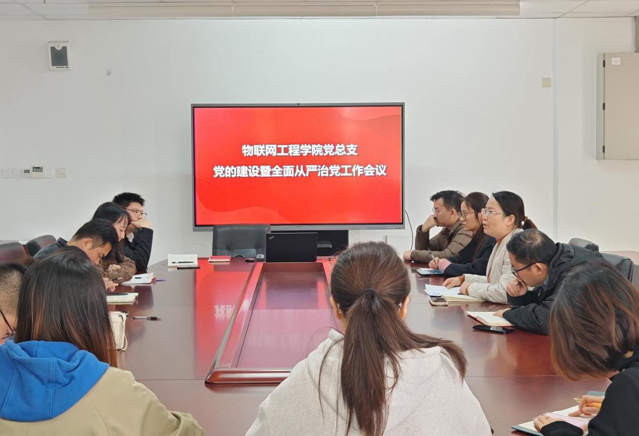 为深入学习贯彻习近平总书记关于党的建设的重要思想,落实学校党委关于全面从严治党工作的决策部署,物联网工程学院党总支于12月4日召开了党的建设暨全面从严治党工作会议。学院党总支副书记臧文佳,党总支纪检委员李富、“强国行”专项行动“双带头人”负责人阚希以及党的建设工作小组全体成员参加了会议,会议由臧文佳主持。