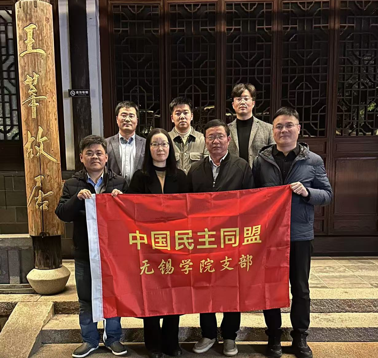 培训结束后,支部成员在朱小红的带领下参观了著名作曲家王莘的故居,在《歌唱祖国》的爱国情感中合影留念。(来源:民盟无锡学院支部)