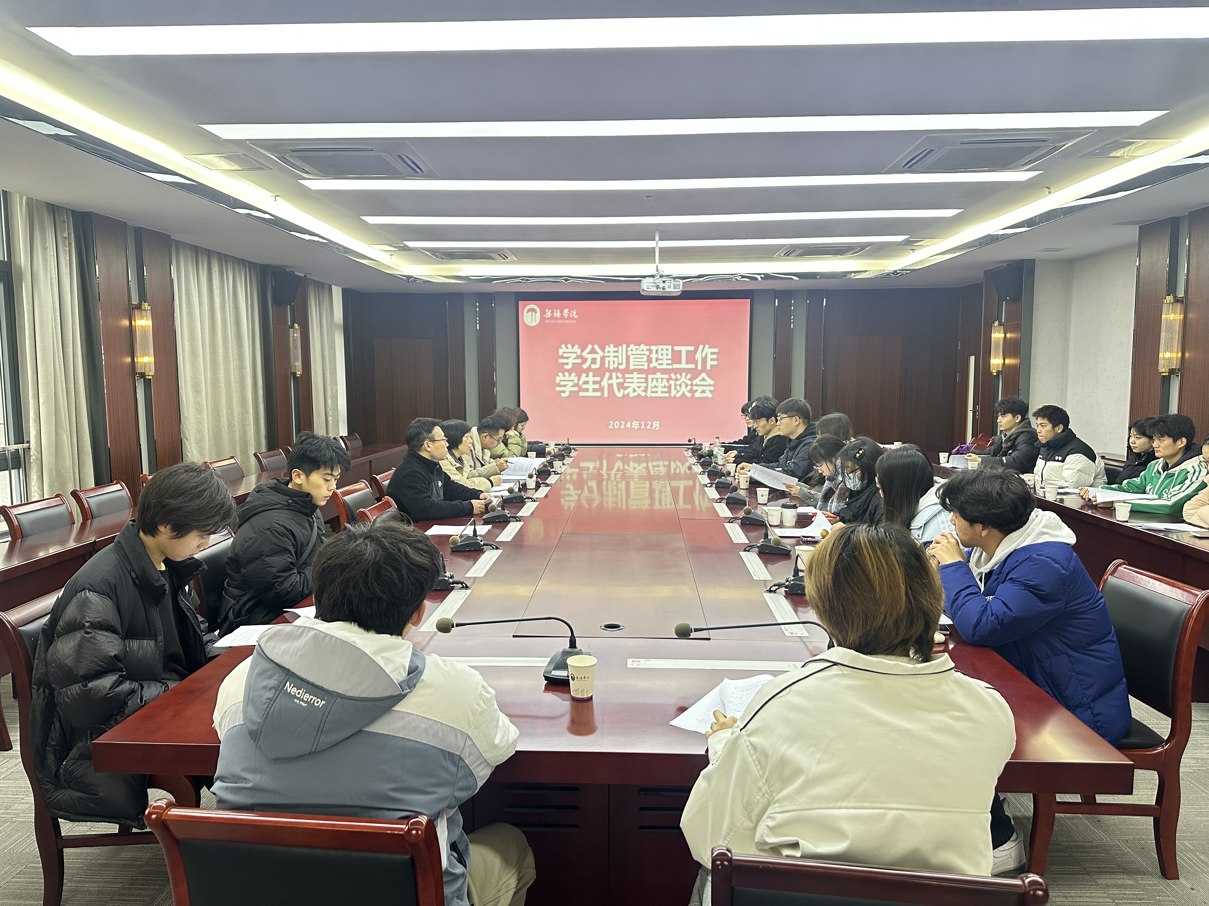 为有效推进学分制管理工作,深入了解2024级学生对学分制管理工作的意见和建议,12月5日上午,我校在行政楼525会议室召开学生代表座谈会。各学院2024级学生代表,教务处、学生工作处、财务处等部门相关人员参加了此次会议。