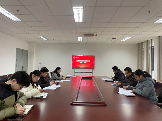 12月12日下午,应用技术学院在思泉楼506会议室召开2024年度教职工大会,应用技术学院院长齐运锋,副院长武丽,党总支副书记张伏青及全体教职工参加会议。会议由张伏青主持。