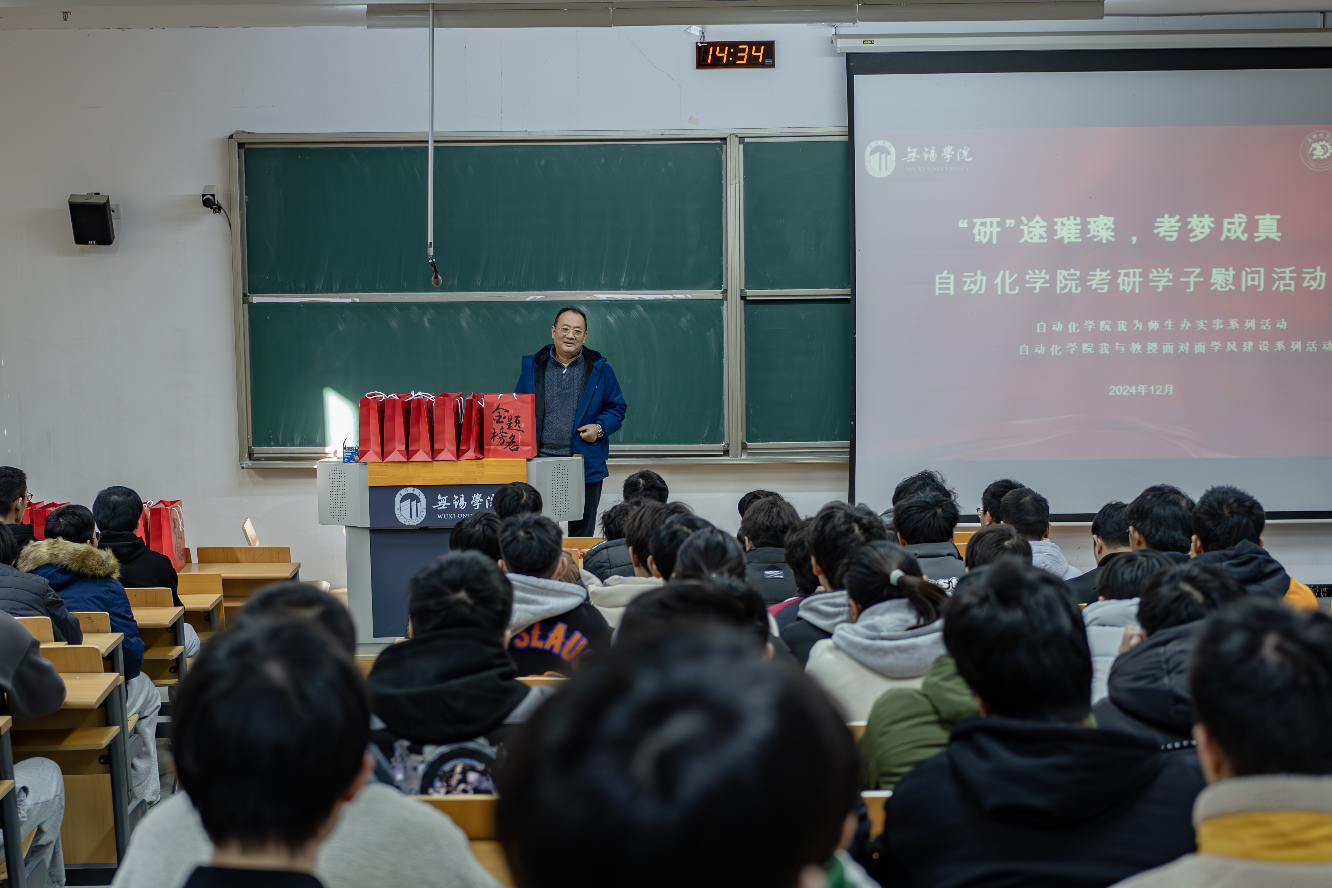 为进一步落实“三有”育人理念,切实关心关爱学生,提升考研学子的备考信心,12月16日下午,自动化学院在思泉楼110室举办考研送温暖慰问活动,为即将踏入考场的同学们送去温暖与力量。自动化学院院长李鹏、党总支副书记王明杰,各系主任、毕业班辅导员、班主任以及2025届考研学生参加此次活动。