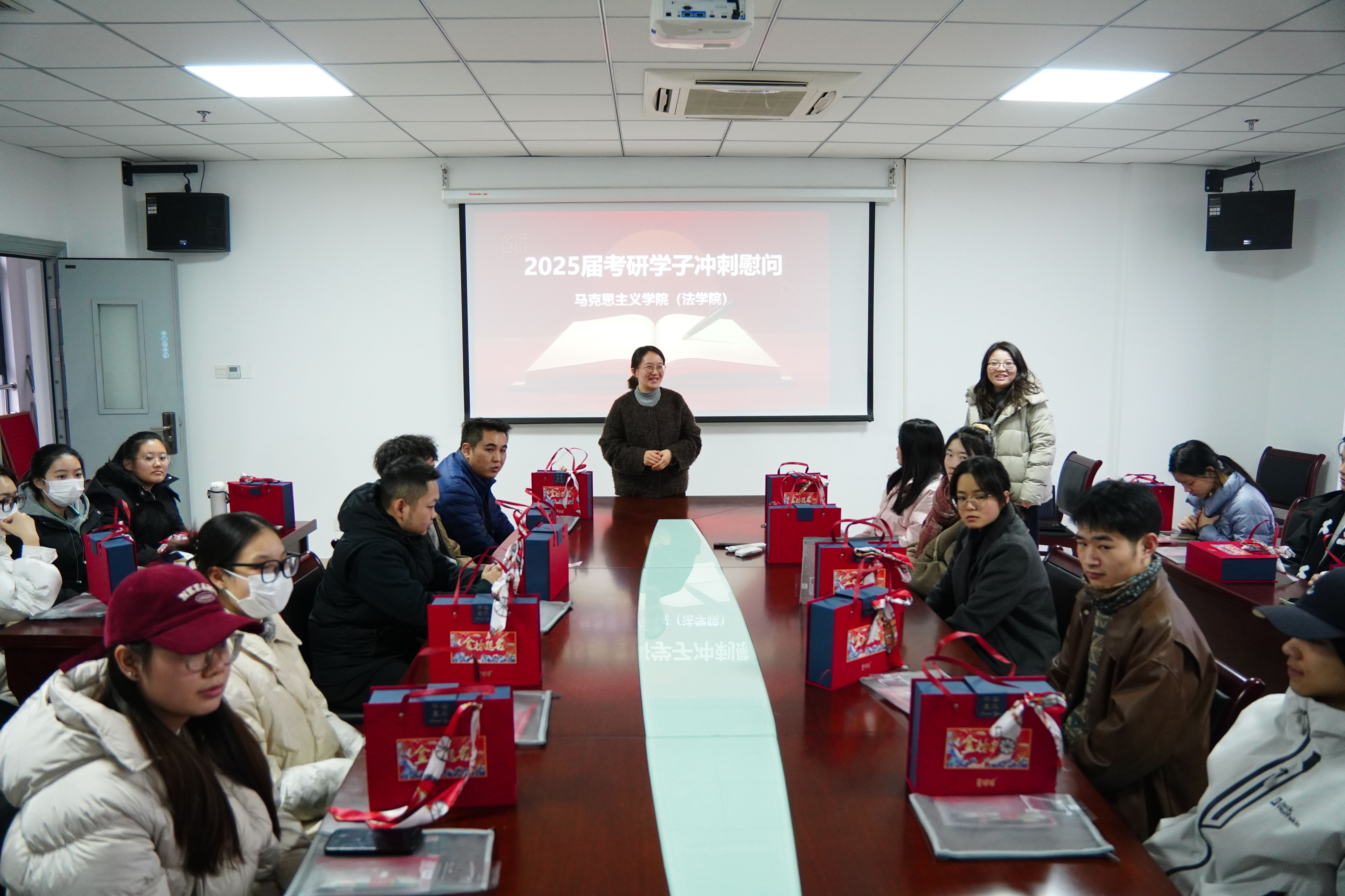寒意渐浓,温暖随行。在2025年全国硕士研究生招生考试来临之际,为鼓舞考研士气,增强学生备考信心,传递温暖力量,马克思主义学院(法学院)在尚真楼511教室开展2025届本科生考研慰问活动。