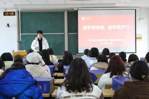 冬至将近,寒意渐浓,为切实关怀家庭经济困难学生,扎实做好学生资助育人工作,12月17日,数字经济与管理学院(应急管理学院)开展“暖冬锦衾情,助学筑梦行”冬季送温暖活动。