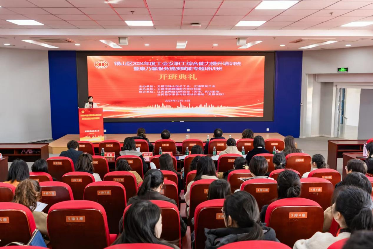 为深入学习贯彻党的二十大、二十届三中全会精神,进一步加强工会女职工干部队伍建设,提升工会女职工干部业务水平和履职能力,12月16日至12月20日,由无锡市锡山区总工会、无锡学院工会主办,无锡传感网国家大学科技园承办,江苏省网络空间安全(无锡)实训基地、全民数字素养与技能培训基地(无锡学院)协办的锡山区2024年度工会女职工综合能力提升培训班暨康乃馨服务提质赋能专题培训班在我校顺利举办。锡山区总工会副主席蔡琳,校工会副主席安杰,无锡传感网国家大学科技园总经理钱王欢,副总经理李敏敏出席开班仪式,本次培训班共计约60名学员参加。