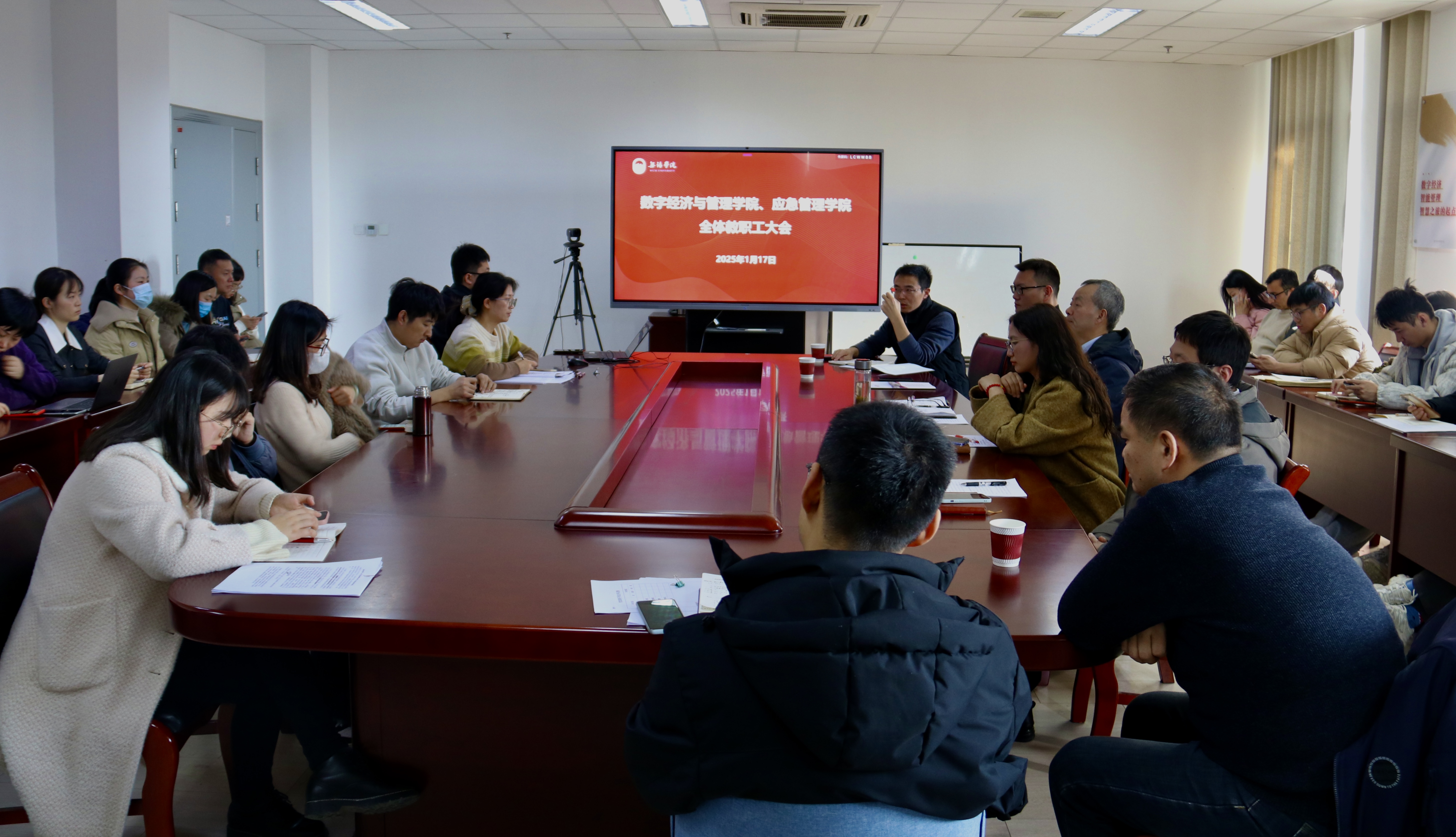 1月17日下午,数字经济与管理学院(应急管理学院)在尚美楼504会议室召开学期末全体教职工大会。数字经济与管理学院(应急管理学院)院长刘军、党总支副书记李诗雅,应急管理学院负责人邹衍华,数字经济与管理学院院长助理刘震、潘栋梁以及全体教职工参加大会。会议由李诗雅主持。