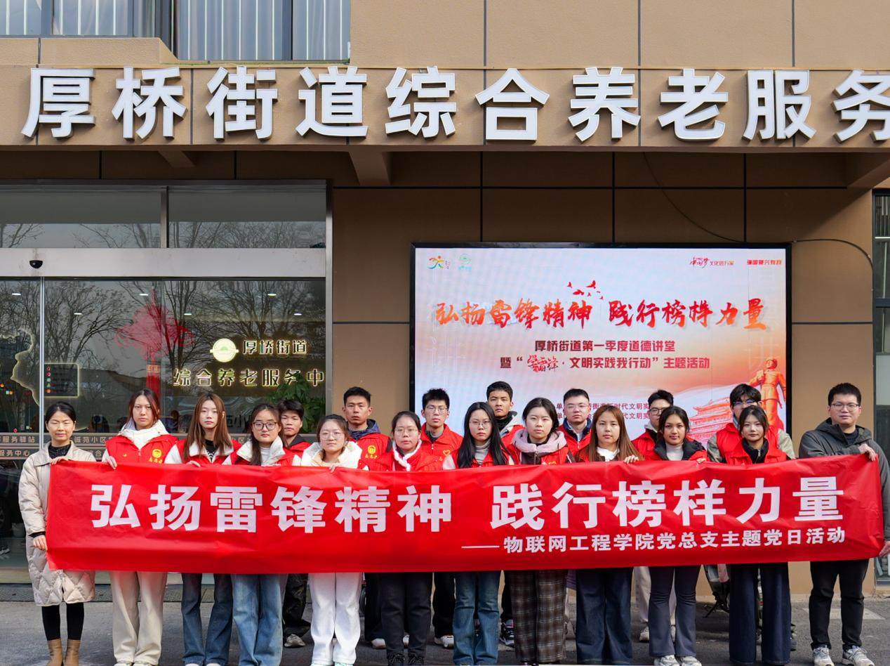 为深入学习贯彻习近平总书记关于弘扬雷锋精神的重要指示,引领师生党员传承红色基因、践行初心使命,3月5日上午,物联网工程学院各学生党支部党员代表在党总支组织员周亦姗、缪志刚的带领下,满怀热忱地前往厚桥街道综合养老服务中心,开展“弘扬雷锋精神,践行榜样力量”主题党日活动。