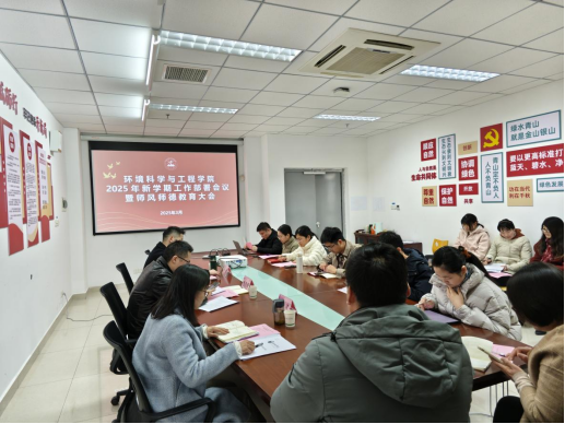3月5日,环境科学与工程学院在尚诚楼301会议室召开新学期工作部署会议暨师风师德教育大会。院长钱杰书,党总支副书记姜欢及全体教职工出席会议,会议由姜欢主持。本次会议以 “迎评促建、提质增效”为主线,系统部署年度重点工作,为学院发展注入新动能。