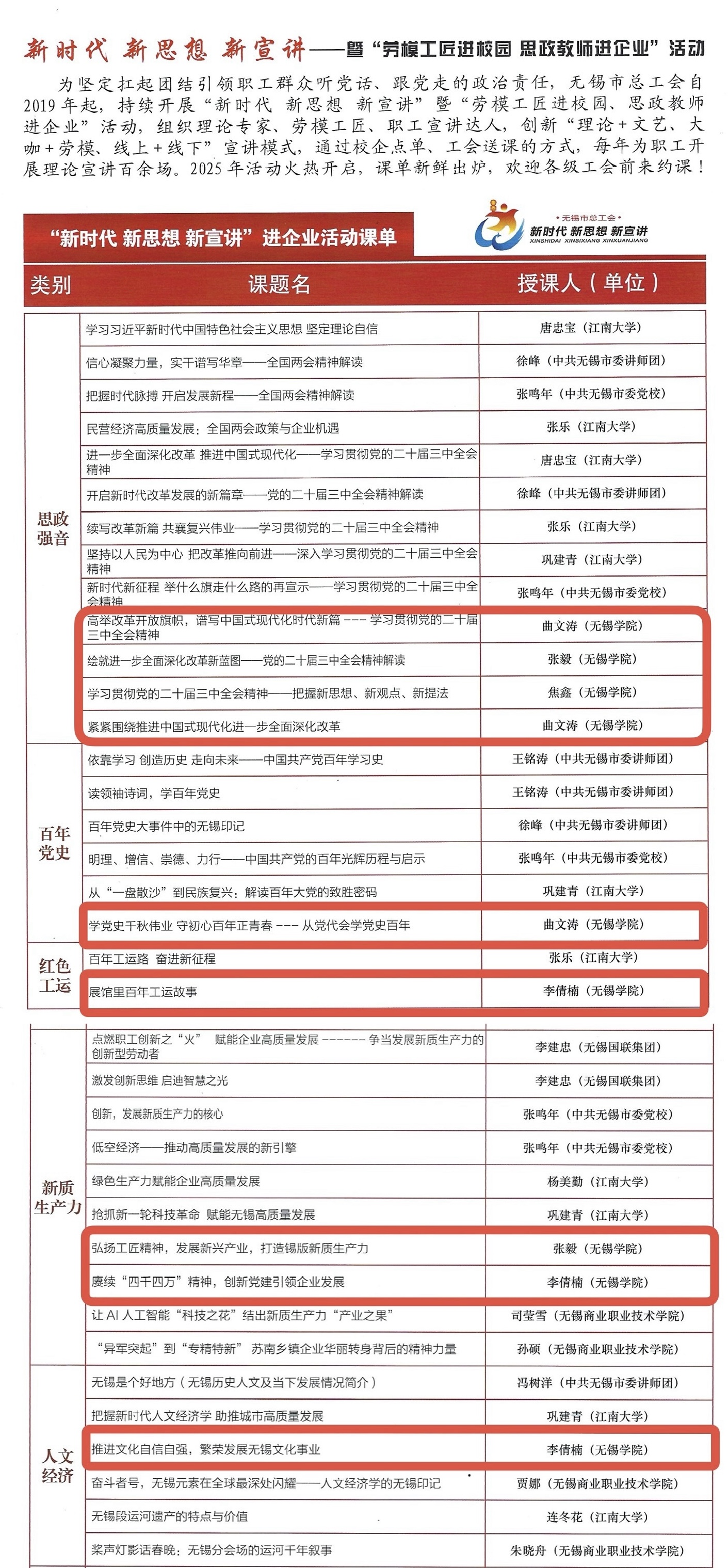 图二:2025年“新时代 新思想 新宣讲”进企业活动课单