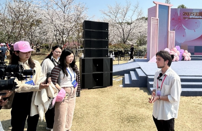 此次我校留学生参与国际赏樱周活动,分别获得《无锡日报》、《无锡发布》等官方媒体的关注和报道,进一步提升了学校在国际教育领域的影响力。在活动现场,我校乌兹别克斯坦籍2024级国际经济贸易专业学生ODILOV FAYZ作为唯一一名在锡留学生代表接受《无锡日报》采访。他表示:“无锡是一座开放包容的城市,这里的樱花不仅美丽,更象征着和平与友谊。我将借助国际赏樱周的平台,把这份友好情谊传递给家乡的亲人朋友,让更多人了解中国、爱上无锡。”