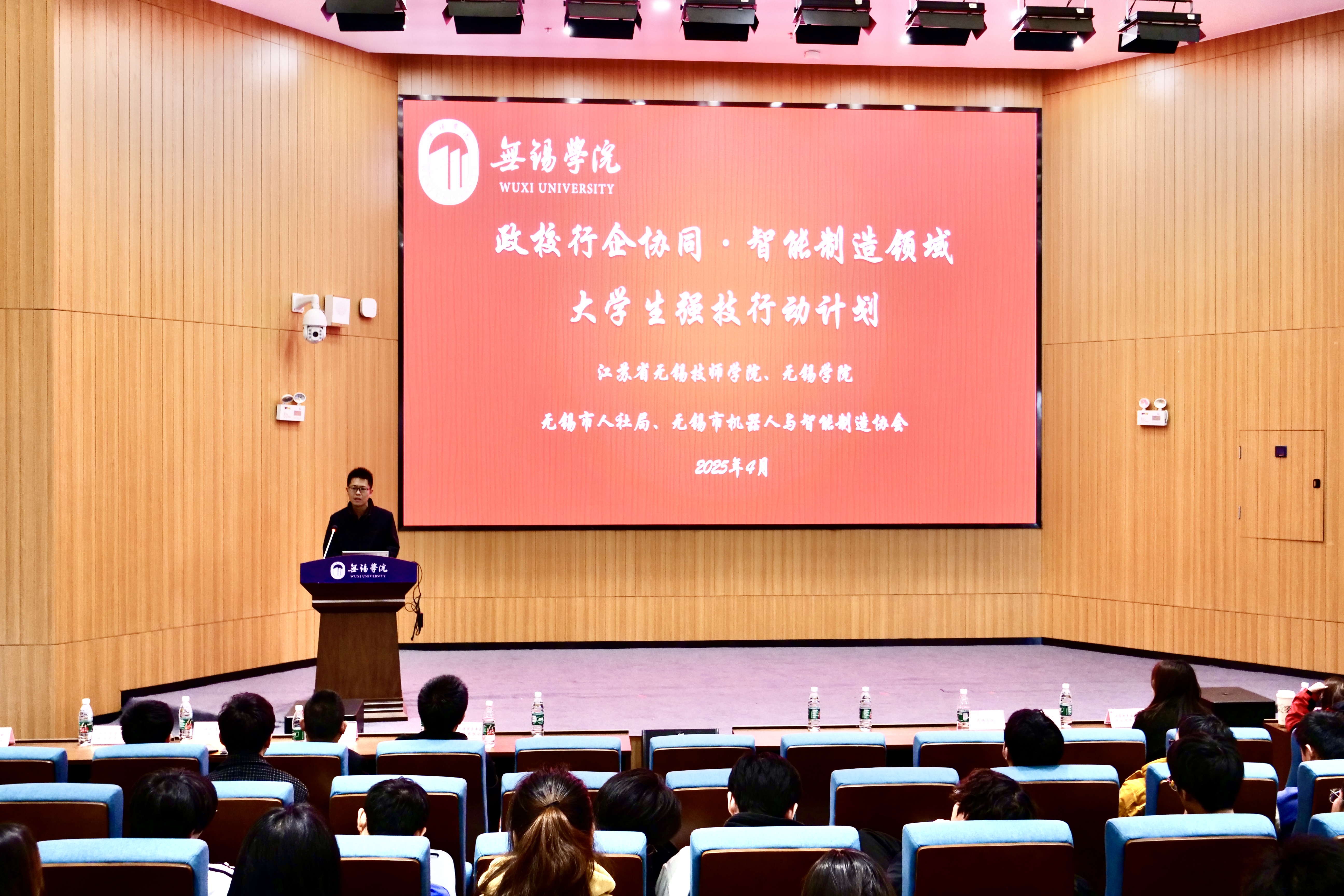 为深化产教融合,推进智能制造领域人才培养模式创新,4月1日下午,我校联合无锡市机器人与智能制造协会,举行“政校行企协同·智能制造领域大学生强技行动计划”启动仪式。无锡市机器人与智能制造协会副秘书长付礼平,我校学生工作处副处长张明亮、自动化学院党总支副书记王明杰及13家智能制造龙头企业代表、200余名相关专业毕业生出席活动,共绘人才培养与产业需求协同发展蓝图。仪式由王明杰主持。