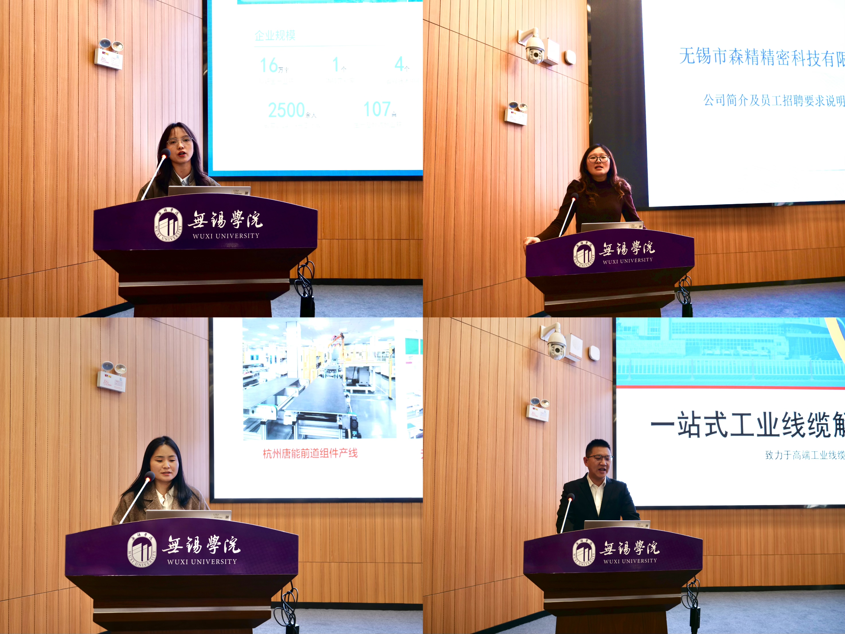 在企业宣讲环节,无锡信捷电气股份有限公司、江苏森蓝智能系统有限公司、无锡艾度科技有限公司等13家企业代表依次上台,详细介绍了本单位的基本情况、招聘需求、薪资待遇、发展空间等。启动仪式后,自动化学院2025届、2026届毕业生前往各招聘点与企业代表一对一深入交流,现场气氛热烈。