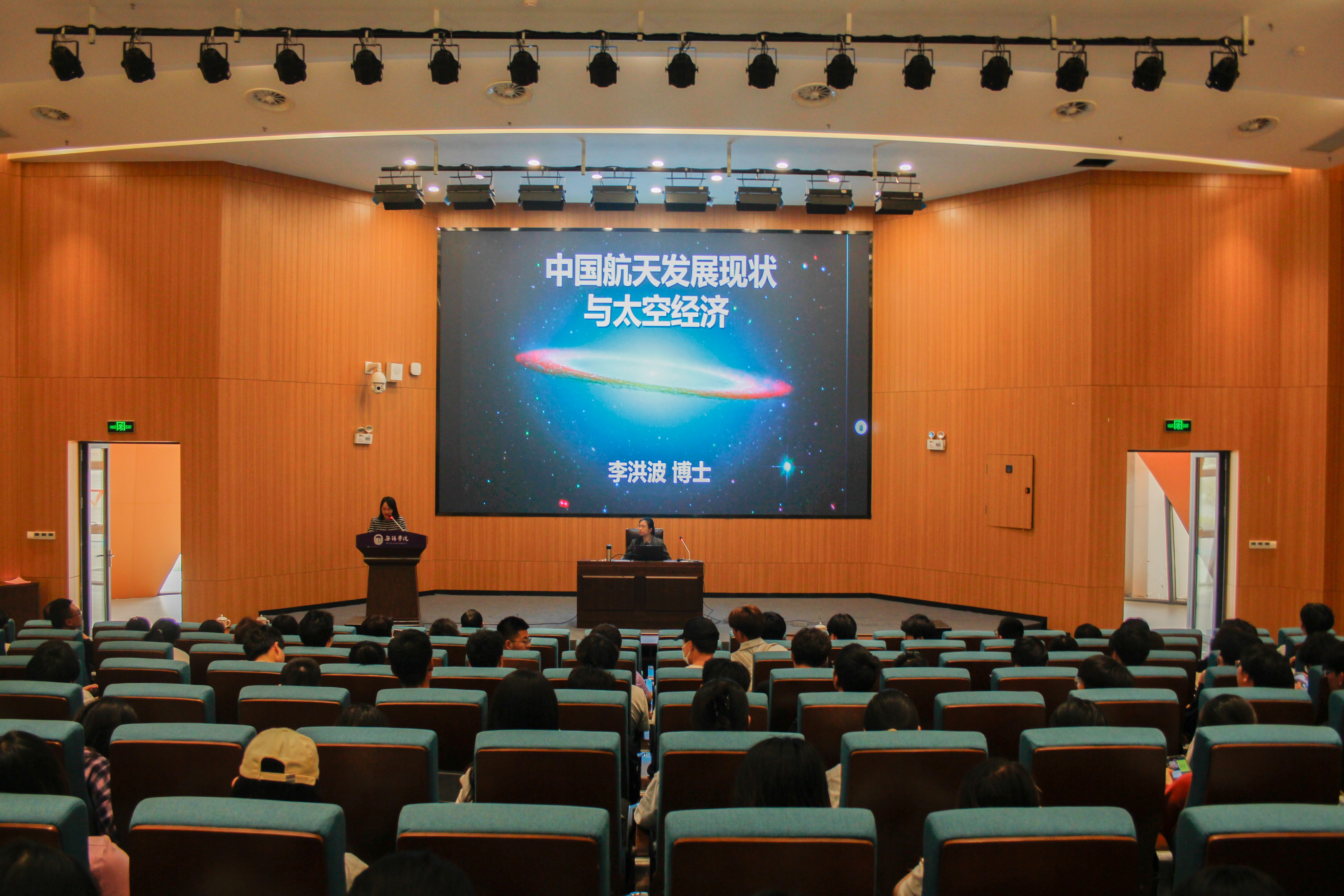 沈妉对李洪波来校宣讲表示热烈欢迎。她指出航天科技不仅提升了国家的国际地位,还深刻影响着我们的日常生活,催生了蓬勃发展的太空经济。希望同学们能借此机会深入了解中国航天的辉煌成就与太空经济的无限潜力。