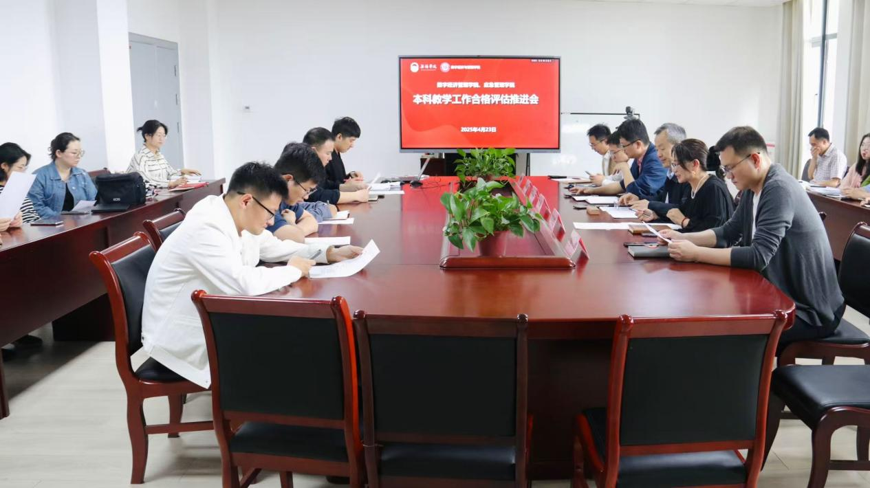 为全面推进本科教学合格评估工作,提升人才培养质量,数字经济与管理学院、应急管理学院于4月23日下午在尚美楼504会议室召开本科教学工作合格评估推进会。院长刘军,党总支副书记李诗雅,副院长王子敏、邹衍华,院长助理刘震、潘栋梁以及全体教职工参加会议。会议由李诗雅主持。