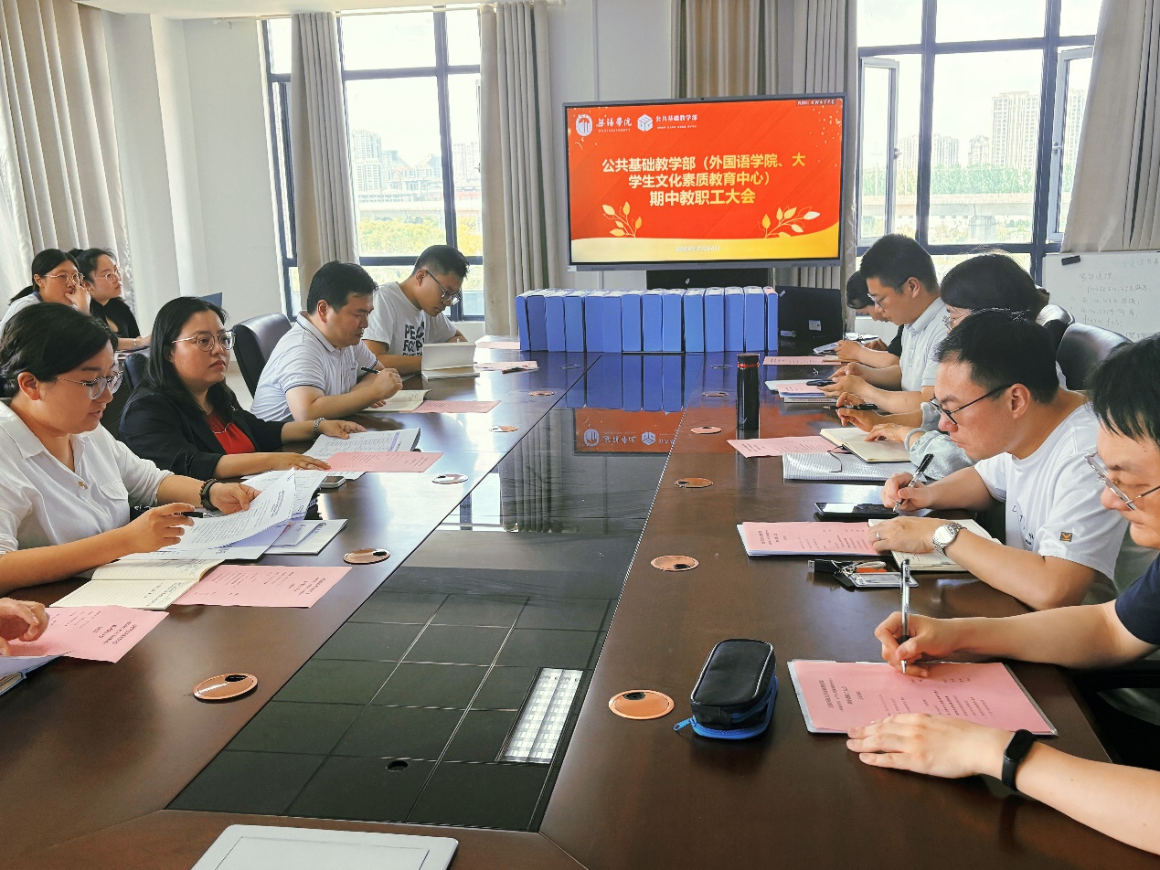 5月14日中午,公共基础教学部在笃学楼503会议室召开期中教职工大会,学部领导班子与全体教职工参会,会议由党总支副书记曹琳主持。会议围绕教职工理论学习、期中教学检查反馈、评估迎检教师动员、师德师风专题学习等议题展开,全面总结上半学期工作,部署下一阶段重点工作。