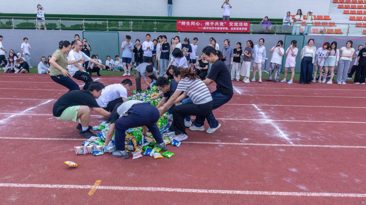 为丰富校园文化生活,增进师生交流情谊,增强班级凝聚力,6月4日下午,数字经济与管理学院、应急管理学院在李园运动场举办第一届班主任“育心赋能”团建活动。本次活动通过“‘力’拔青春”“零食大作战”“童趣拾光”三大环节,以趣味竞技与协作游戏为载体,奏响实践育人新篇章。
