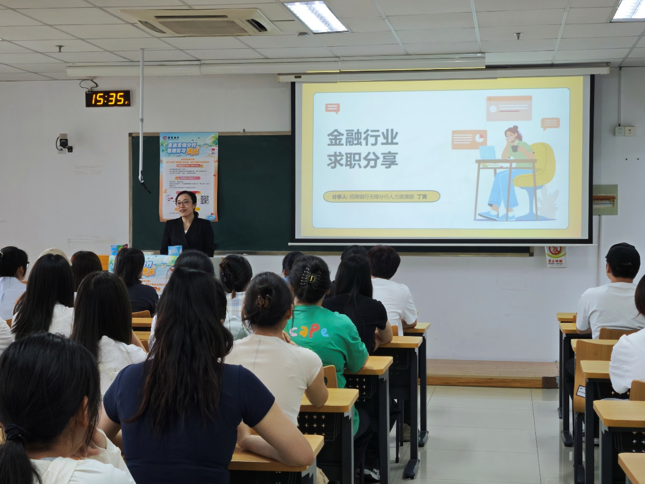 在暑期实习招募环节,她详细解读了实习生计划之无锡学院专项大学生创新实践活动——“招行卡推广创意赛”,鼓励同学们发挥专业优势,结合数字营销、数据分析等专业技能,将创新思维融入商业方案设计。赛事中表现优异的学生,将直接获得暑期实习“入场券”,走进真实工作场景,参与项目运作,在资深导师的指导下积累实战经验,提前感受金融行业的工作节奏与职业环境。